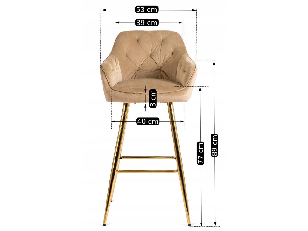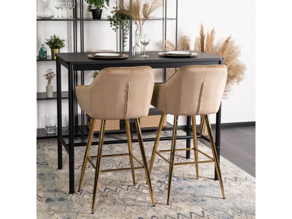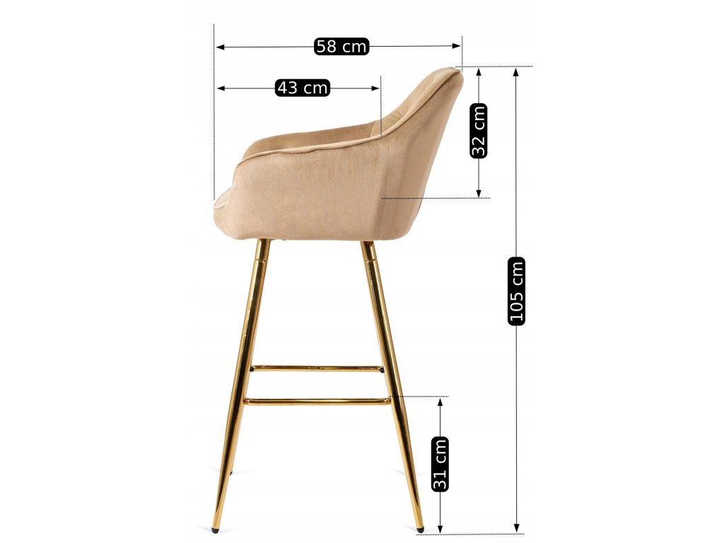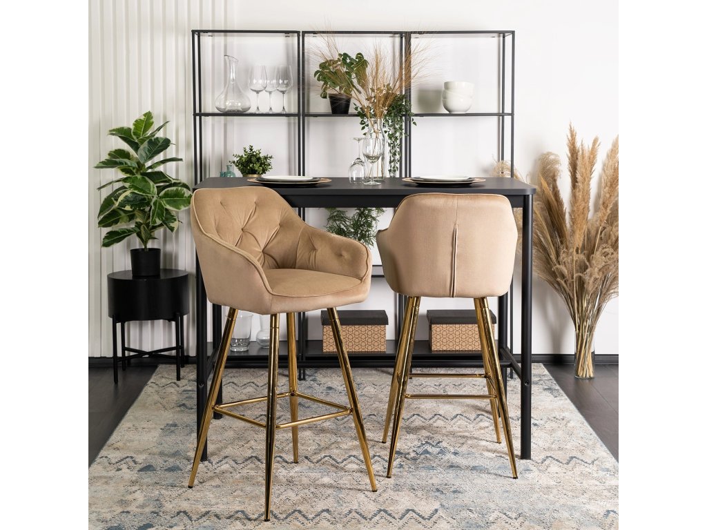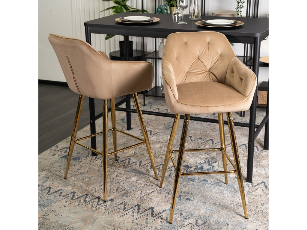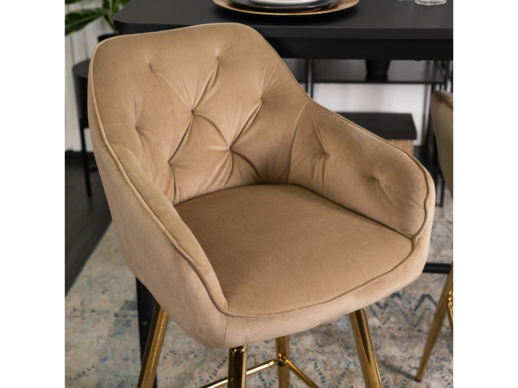 Barová stolička ANDY – béžový velúr / zlaté nohy