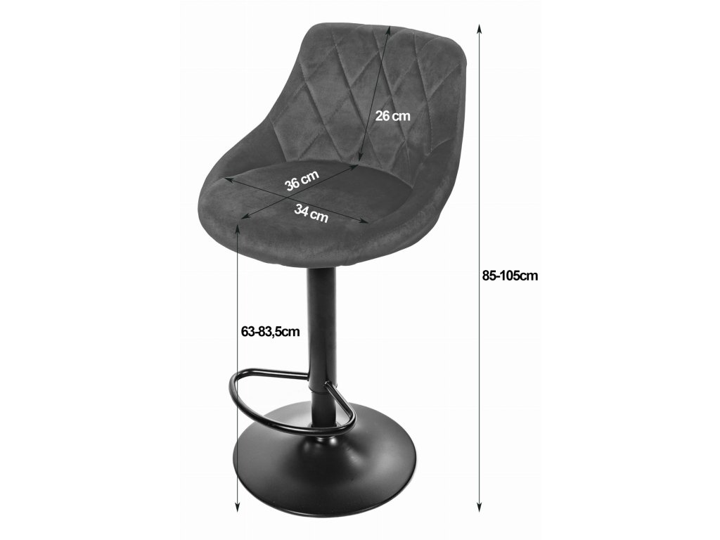 Barová stolička KAST VELVET je moderná otočná stolička s možnosťou nastavenia 4 úrovní výšky, ideálna ako stolička k barovému pultu, jedálenskému pultu či do kuchyne. Elegantné barové sedenie s čalúneným operadlom, jemným prešívaním a zamatovým poťahom je vhodné aj ako stolička do baru, kaviarne, reštaurácie alebo salónu. Luxusná čierna kovová základňa s opierkou na nohy zaručuje stabilitu a vysoký komfort. Štýlová zamatová stolička, ktorá spája dizajn, pohodlie a funkčnosť.