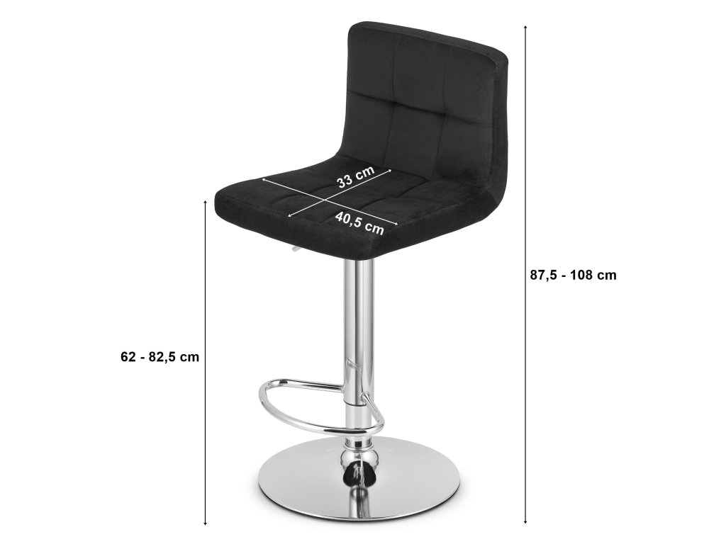 Barová stolička PROT VELVET je moderná otočná stolička s možnosťou nastavenia 4 úrovní výšky, ideálna ako stolička k barovému pultu, jedálenskému pultu či do kuchyne. Elegantné barové sedenie s čalúneným operadlom, jemným prešívaním a zamatovým poťahom je vhodné aj ako stolička do baru, kaviarne, reštaurácie alebo salónu. Čierna kovová základňa s opierkou na nohy zaručuje stabilitu a vysoký komfort. Štýlová zamatová stolička, ktorá spája dizajn, pohodlie a funkčnosť.
