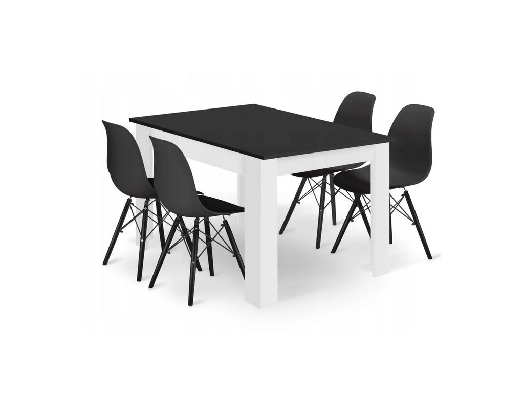 Čierna farba stoličiek v kombinácii s povrchom stola v dekore dub sonoma vytvára harmonický kontrast, ktorý zapadne do moderného, minimalistického aj škandinávskeho interiéru.