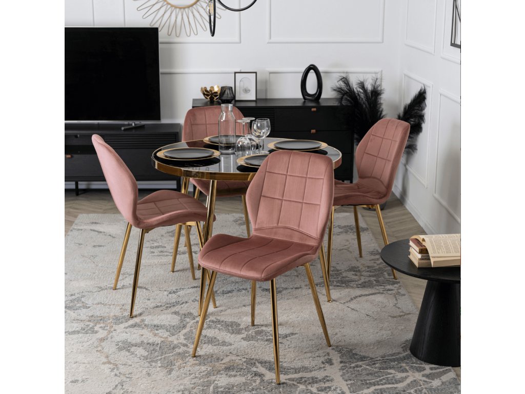 Jedálenská zostava stôl AMADORA 100 cm a 4 čalúnené stoličky IBIS ružový glamour