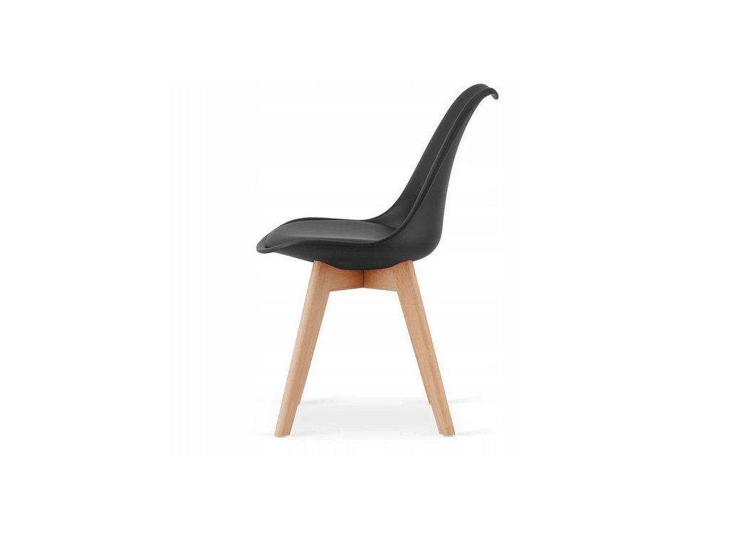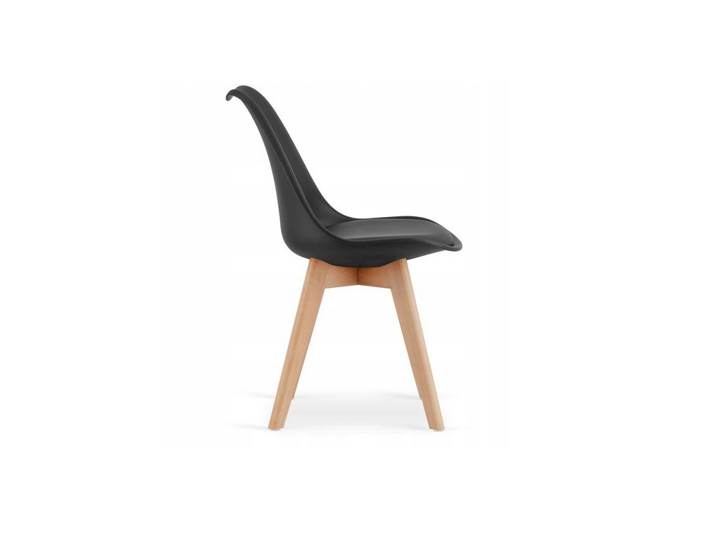Súčasťou zostavy sú 4 čierne jedálenské stoličky MARK s pevnými bukovými nohami, ktoré zaručujú stabilitu a dlhú životnosť. Ergonomický tvar stoličiek a sedák z kvalitnej eko kože poskytujú maximálne pohodlie aj pri dlhšom sedení.