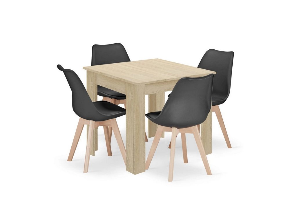 Jedálenská súprava – stôl Dub sonoma 80 × 80 cm + 4 čierne stoličky MARK