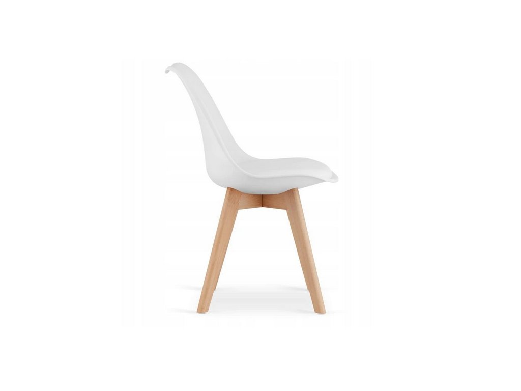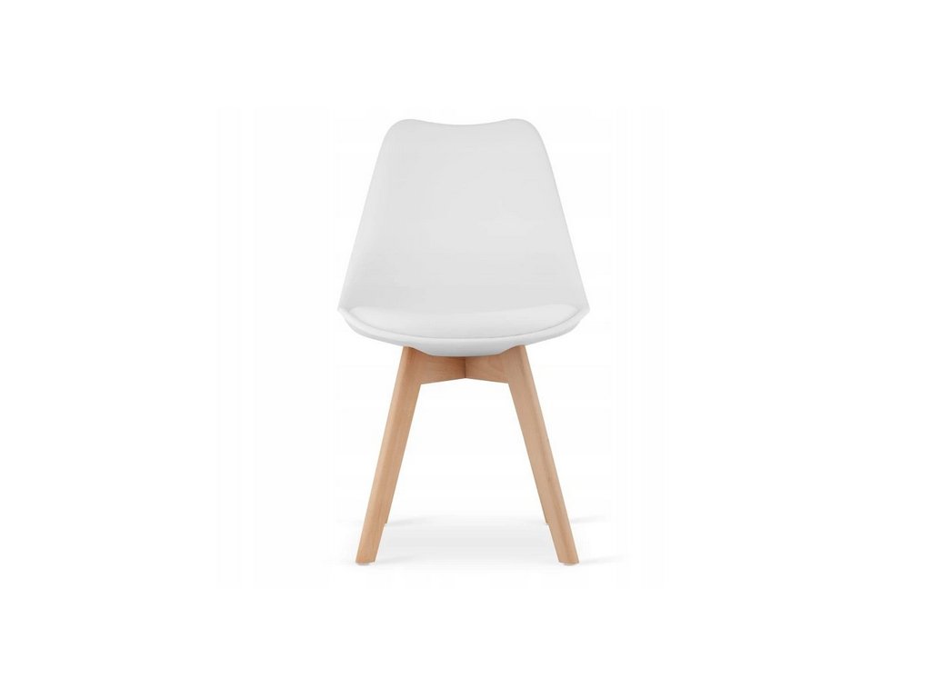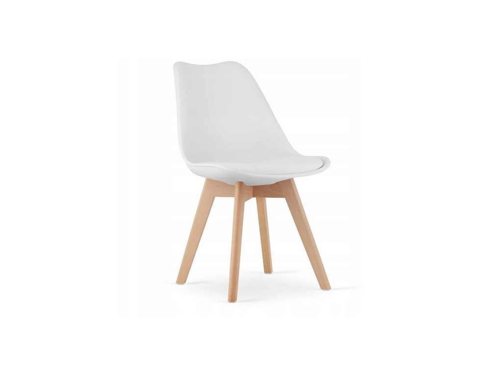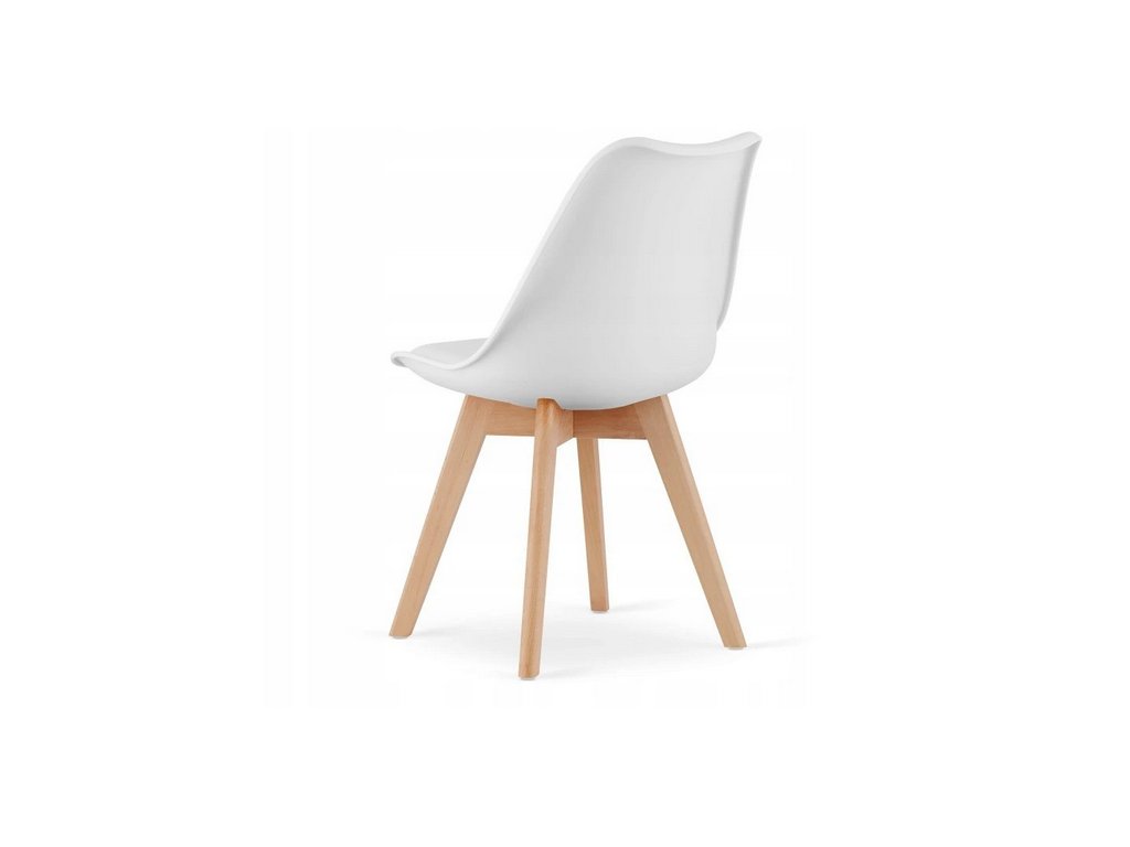 Biele stoličky MARK vytvárajú elegantný kontrast k svetlému drevodekoru stola a zároveň ponúkajú komfort vďaka ergonomickému tvaru a kvalitnému čalúneniu.