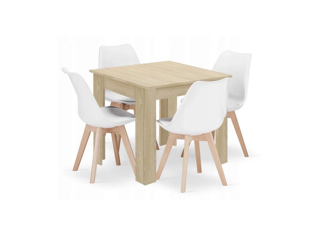 Jedálenská súprava – stôl Dub sonoma 80 × 80 cm + 4 biele stoličky MARK