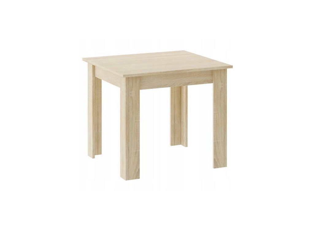 Stôl s rozmermi 80 × 80 cm v dekore dub sonoma pôsobí teplo a prirodzene. V kombinácii s bielymi stoličkami vzniká elegantný kontrast, ktorý dodáva celej zostave moderný a sofistikovaný vzhľad.