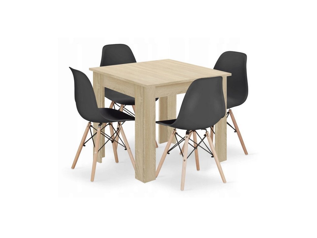 Jedálenská súprava – stôl Dub sonoma 80 × 80 cm + 4 čierne stoličky OSAKA
