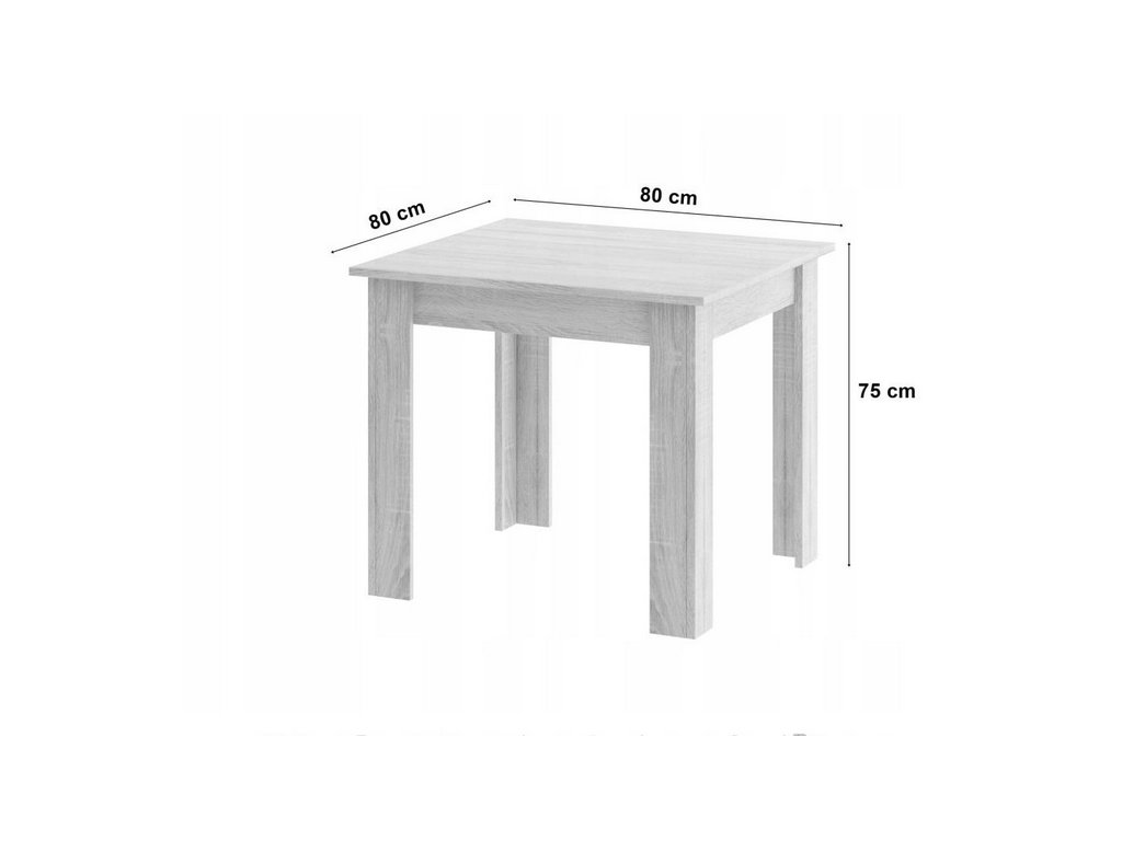 Stôl s rozmermi 80 × 80 cm je ideálnou voľbou pre menšie kuchyne alebo jedálne. Kompaktné rozmery šetria priestor, no zároveň poskytujú dostatok miesta pre pohodlné stolovanie. Pevná konštrukcia a kvalitné materiály zabezpečujú stabilitu a dlhú životnosť.