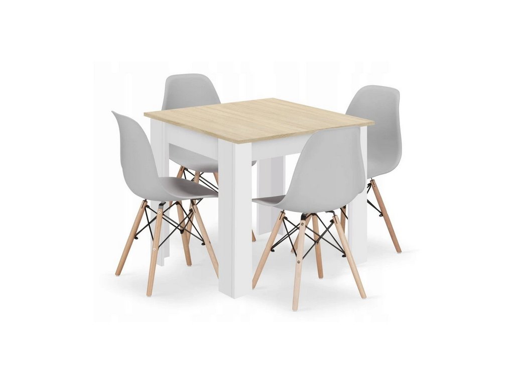 Táto štýlová jedálenská zostava predstavuje dokonalé spojenie funkčnosti, komfortu a moderného škandinávskeho dizajnu. Vďaka kompaktným rozmerom je ideálnou voľbou pre menšie kuchyne alebo jedálne, kde ponúka praktický aj estetický prínos.