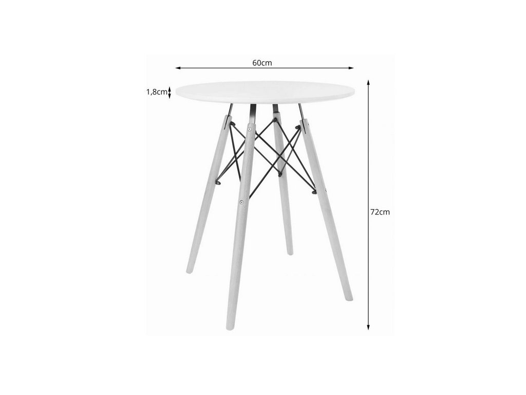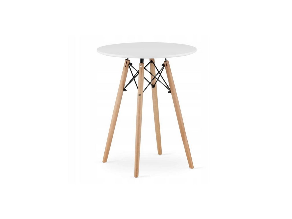 Okrúhly stôl TODI s priemerom 60 cm disponuje bielou doskou a bukovými nohami, ktoré dodávajú priestoru svetlosť a vzdušnosť. Je ideálnou voľbou pre menšie domácnosti, apartmány či raňajkové kúty, kde šetrí miesto bez kompromisov na štýle či stabilite.