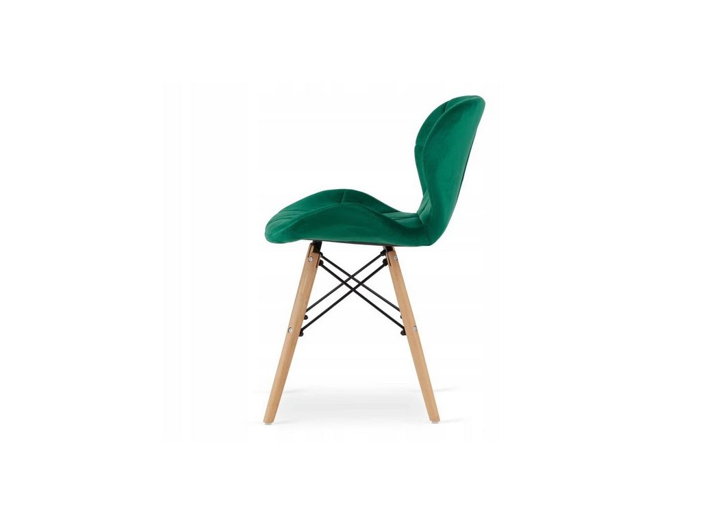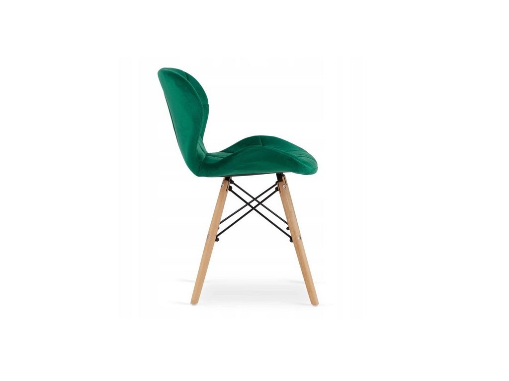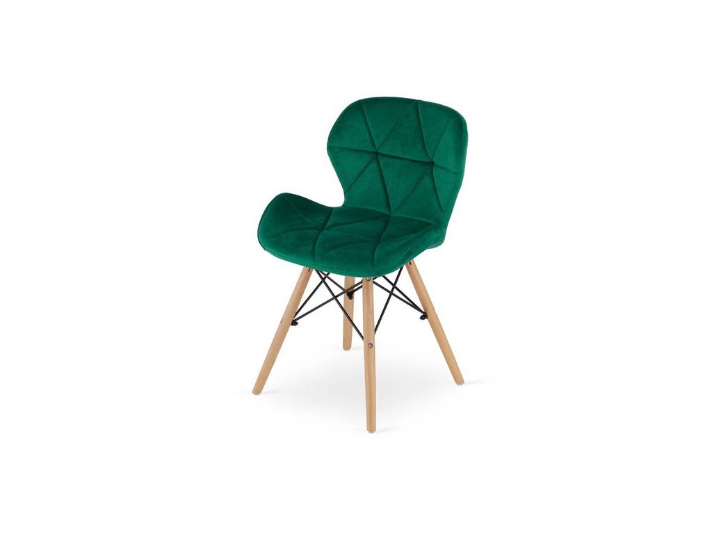 Dve stoličky LAGO v zamatovej zelenej farbe ponúkajú nielen elegantný vzhľad, ale aj vysoký komfort vďaka mäkkému sedáku a ergonomickému tvaru. Prírodné bukové nohy ladia so stolom a zaručujú pevnosť a dlhú životnosť.