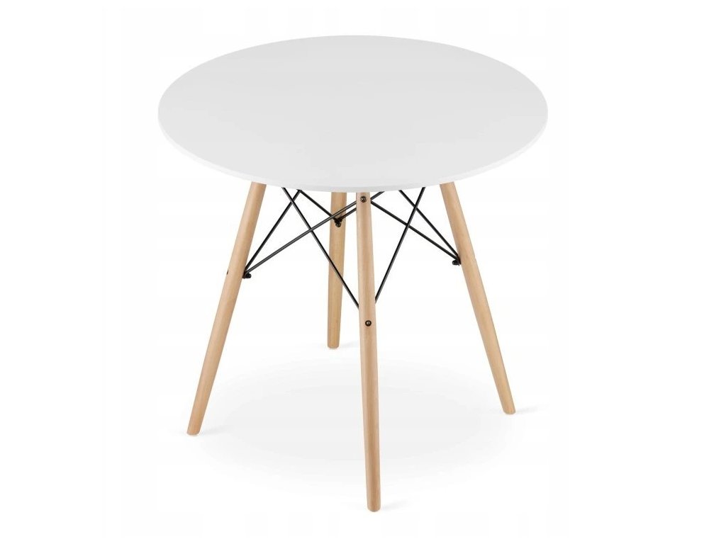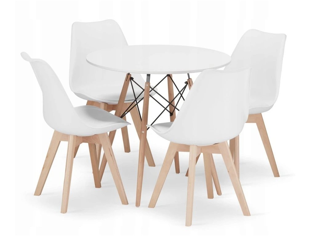 Jedálenský set TODI 80 cm + 4 stoličky MARK – biele je štýlový jedálenský set v škandinávskom duchu spája eleganciu a praktickosť. Okrúhly stôl s bielou doskou a bukovými nohami dopĺňajú štyri biele stoličky s čalúneným sedákom, ktoré zabezpečia komfort a harmonický vzhľad do každej kuchyne či jedálne.