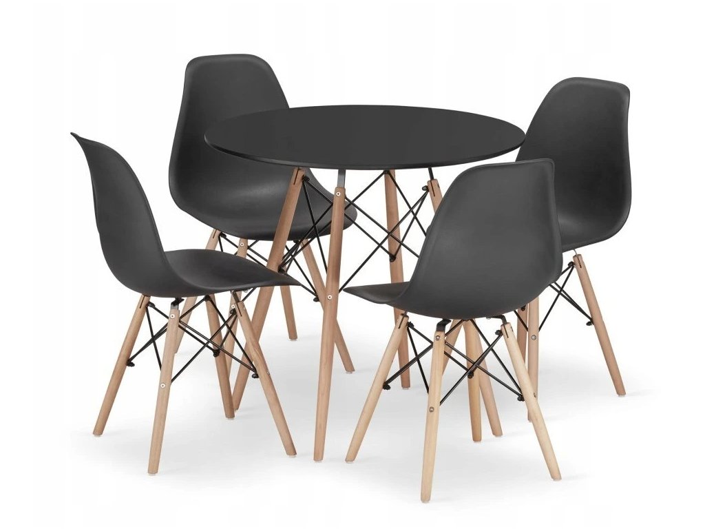 Jedálenský set TODI 80 cm + 4 stoličky OSAKA – čierne je štýlový jedálenský set v škandinávskom duchu prináša eleganciu aj praktické využitie. Okrúhly stôl s čiernou doskou a bukovými nohami dopĺňajú štyri čierne stoličky, ktoré ponúkajú komfort a vytvárajú harmonický priestor pre každodenné stolovanie.