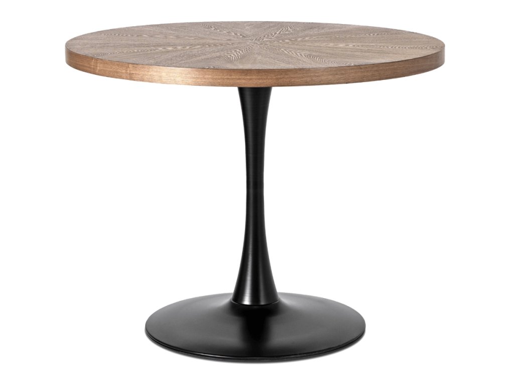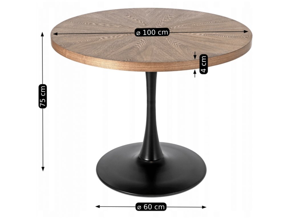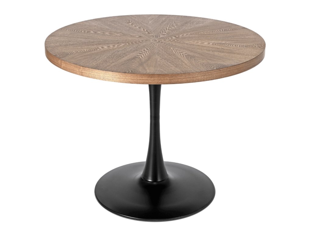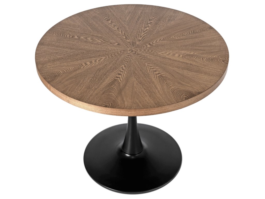 Moderný Vintino okrúhly jedálenský stôl IRIS v prevedení orech s čiernou kovovou nohou je ideálnou voľbou pre tých, ktorí hľadajú spojenie dizajnu, funkčnosti a praktického využitia. Vďaka primeru 100 cm sa dokonale prispôsobí malým priestorom – od útulnej kuchyne až po priestrannú jedáleň.