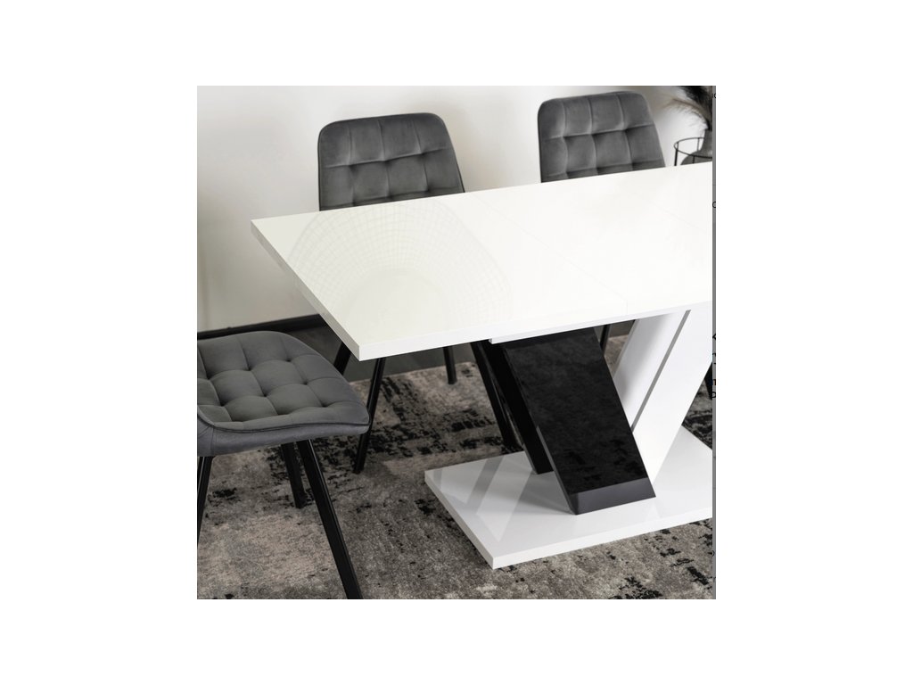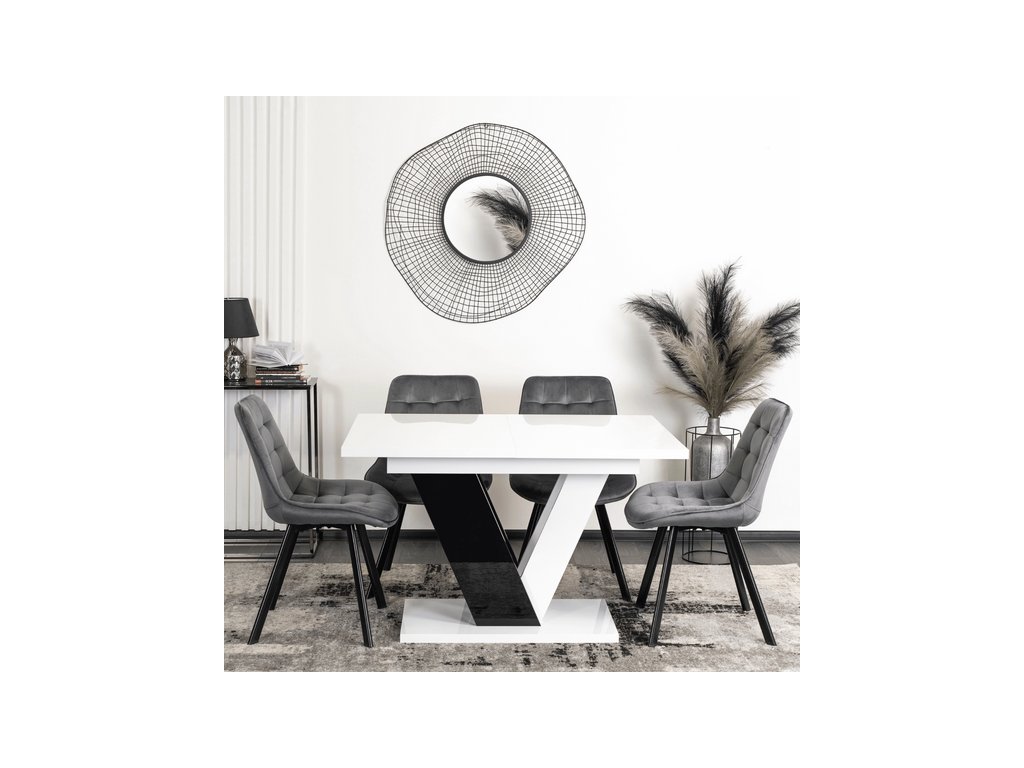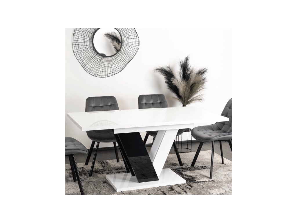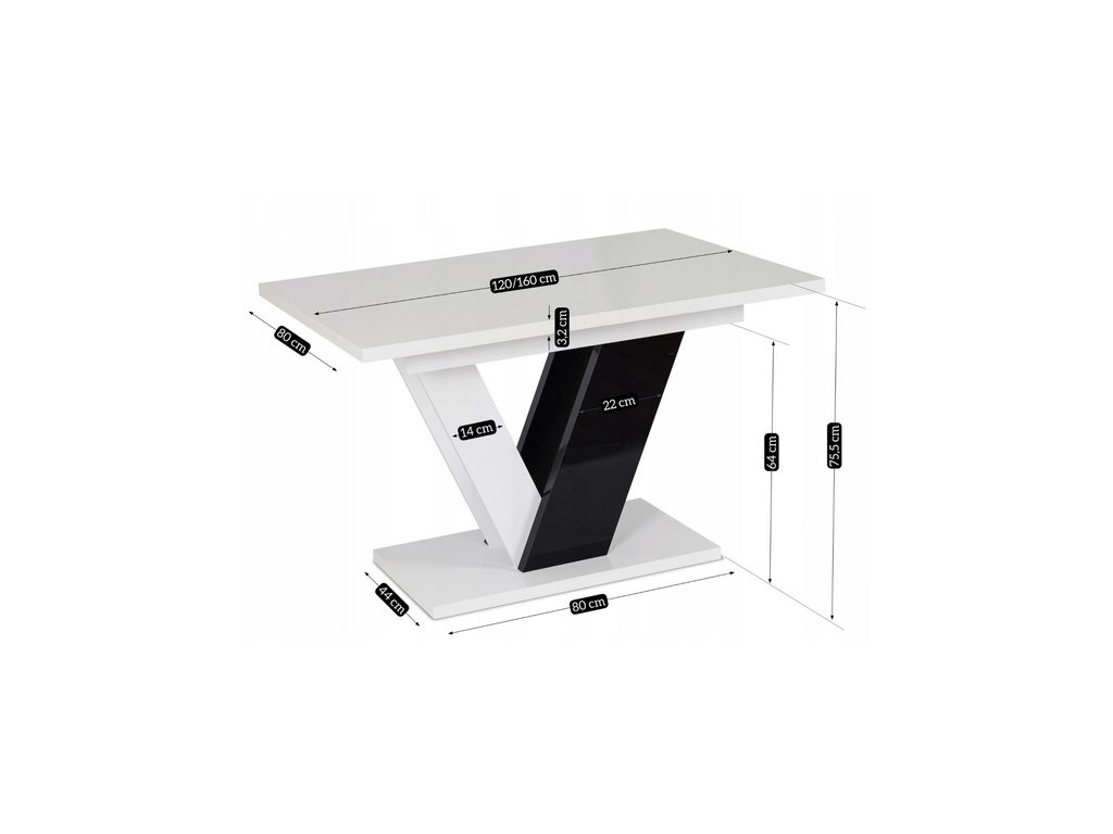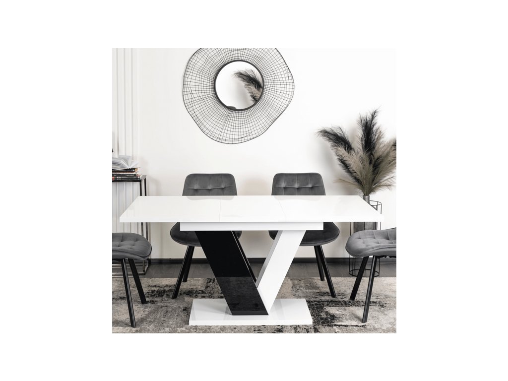 Moderný Vintino rozťahovací, rozkladací jedálenský stôl ARES v prevedení biely/čierny lesk je ideálnou voľbou pre tých, ktorí hľadajú spojenie dizajnu, funkčnosti a praktického využitia. Vďaka možnosti rozloženia z dĺžky 120 cm až do 160 cm sa dokonale prispôsobí malým aj veľkým priestorom – od útulnej kuchyne až po priestrannú jedáleň.