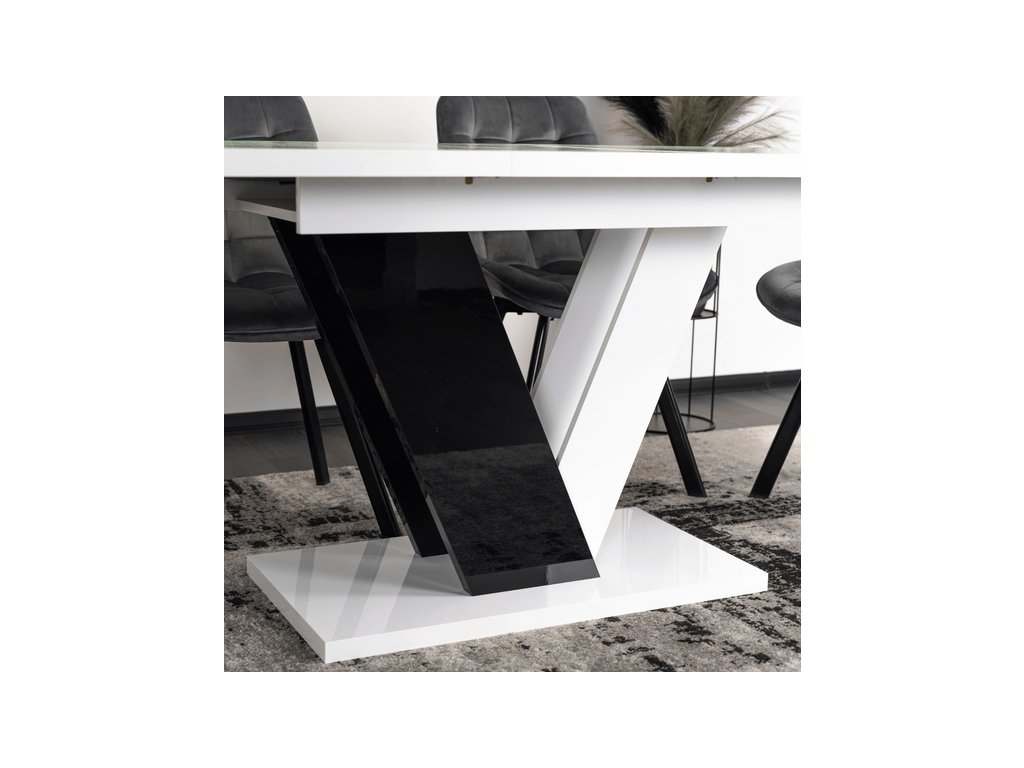 Elegantný rozťahovací, rozkladací jedálenský stôl Perseus v dekore glamour biely/čierny lesk. Rozložíte ho od 120 cm až po 160 cm, takže ponúka flexibilitu pre malé aj veľké priestory. Perfektný stôl do jedálne, kuchyne aj modernej obývačky, reštaurácie, kaviarne.