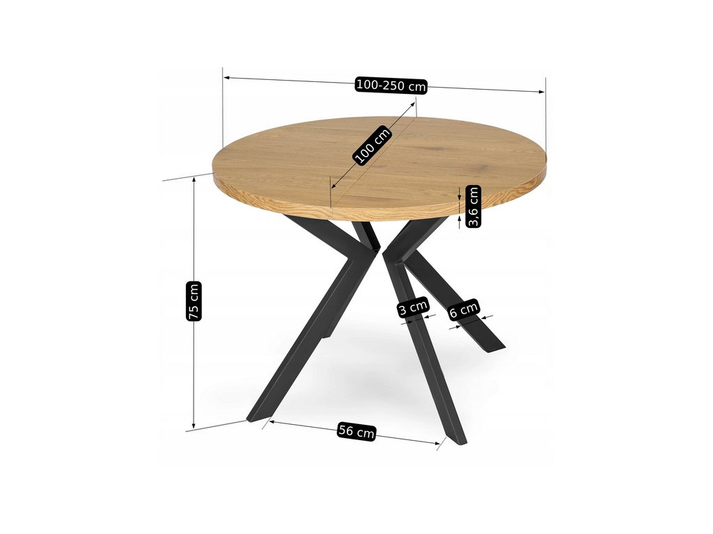 Moderný Vintino rozťahovací, rozkladací jedálenský stôl PERSEUS v prevedení dub zlatý s čiernymi kovovými nohami je ideálnou voľbou pre tých, ktorí hľadajú spojenie dizajnu, funkčnosti a praktického využitia. Vďaka možnosti rozloženia z dĺžky 100 cm až do 250 cm sa dokonale prispôsobí malým aj veľkým priestorom – od útulnej kuchyne až po priestrannú jedáleň.