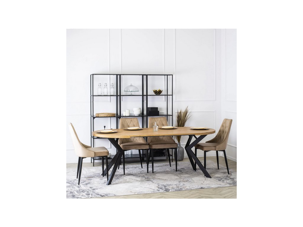Masívna stolová doska v dekore dub zlatý pôsobí nadčasovo a elegantne, zatiaľ čo pevné čierne nohy v modernom priemyselnom štýle zaisťujú stabilitu a dlhú životnosť. Vďaka svojmu dizajnu sa stôl skvele hodí k rôznym typom stoličiek a ľahko zapadne do moderného, industriálneho či škandinávskeho interiéru.