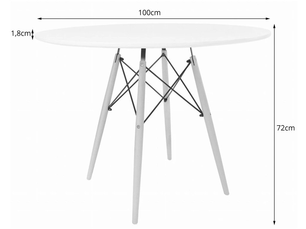 Okrúhly stôl s priemerom 100 cm s bielou MDF doskou a pevnými drevenými nohami prináša do vašej jedálne moderný štýl a praktickosť v jednom. Matný povrch dosky sa ľahko kombinuje s rôznymi typmi nábytku a dodáva priestoru svieži a elegantný vzhľad. Vďaka jednoduchému, nadčasovému dizajnu sa stôl perfektne hodí do kuchyne, jedálne alebo komerčných priestorov a stane sa obľúbeným miestom pre každodenné stolovanie i rodinné posedenia s priateľmi.