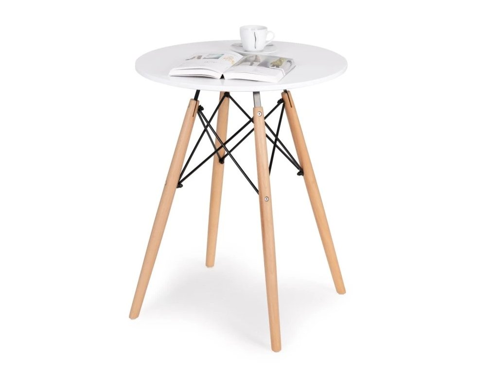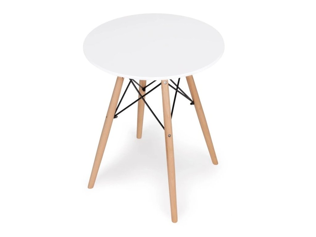 Okrúhly stôl s priemerom 60 cm s čistou bielou MDF doskou a pevným dreveným rámom prináša do vášho priestoru štýl a praktickosť v jednom. Matný povrch dosky sa hodí k širokej škále nábytku a jednoduchý dizajn zaručuje univerzálne využitie. Skvelý do kuchyne, jedálne alebo pracovných priestorov, tento stôl kombinuje eleganciu s každodennou funkčnosťou.