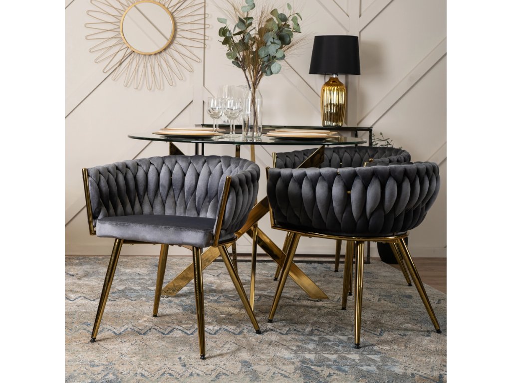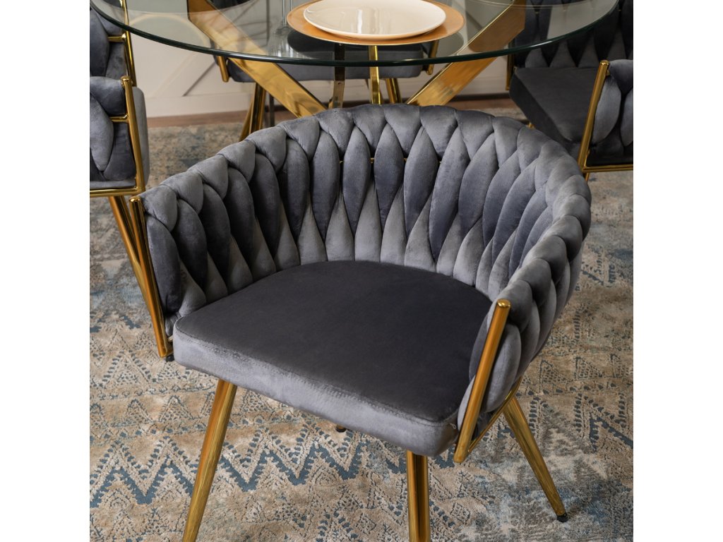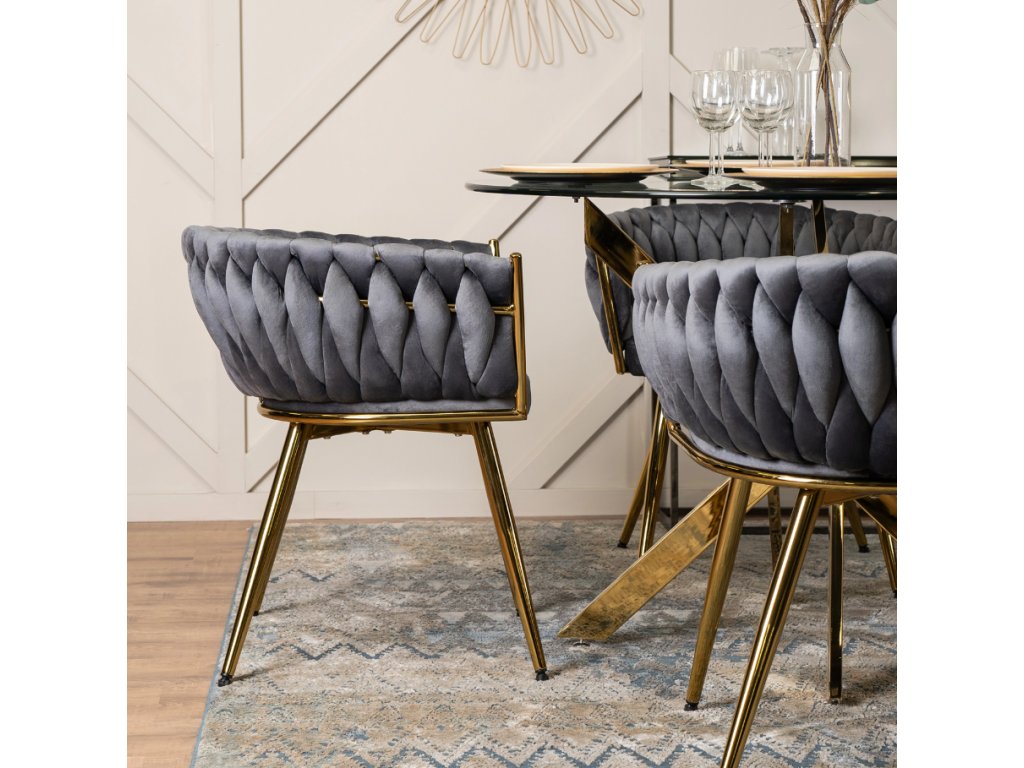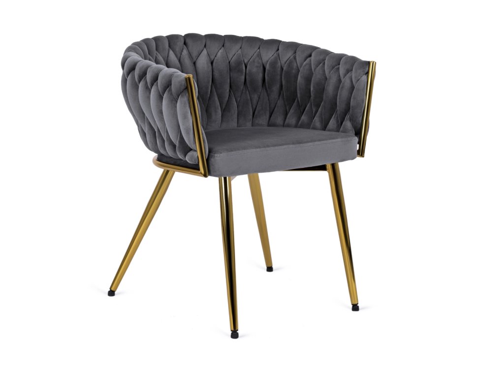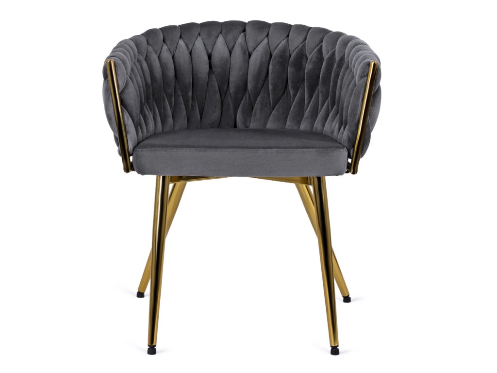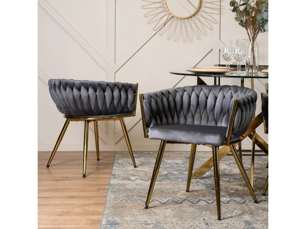 Kreslo CARINA pletený velúr - sivý zamat zlaté nohy