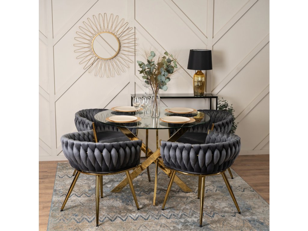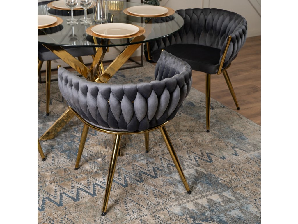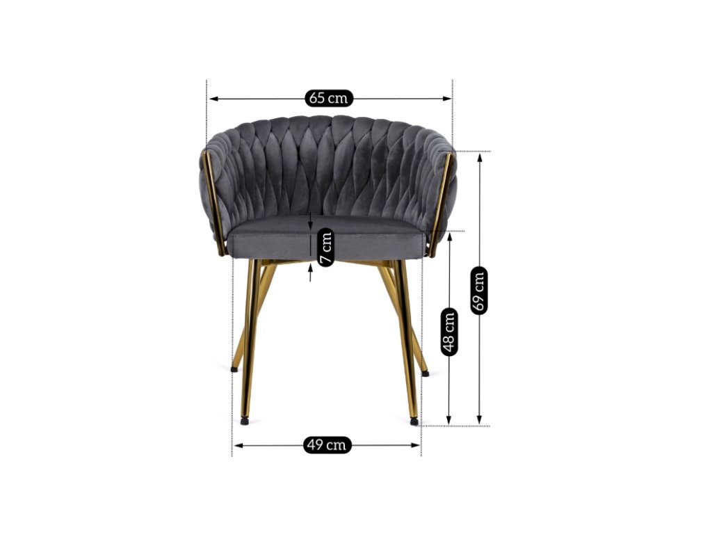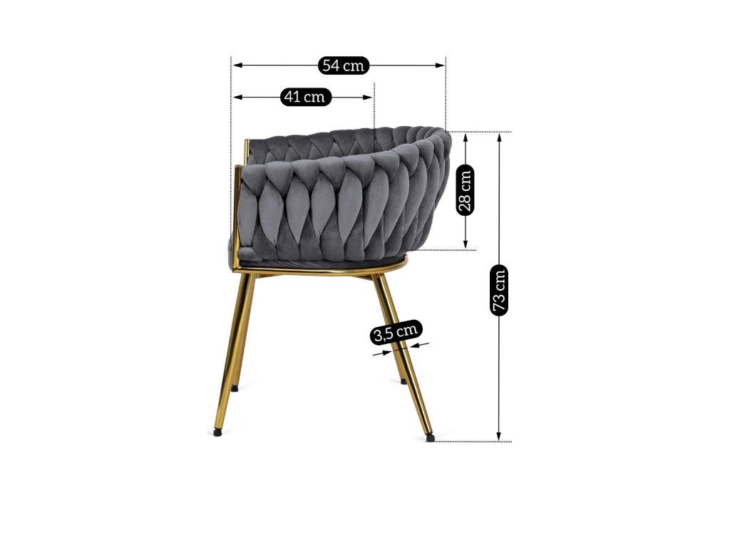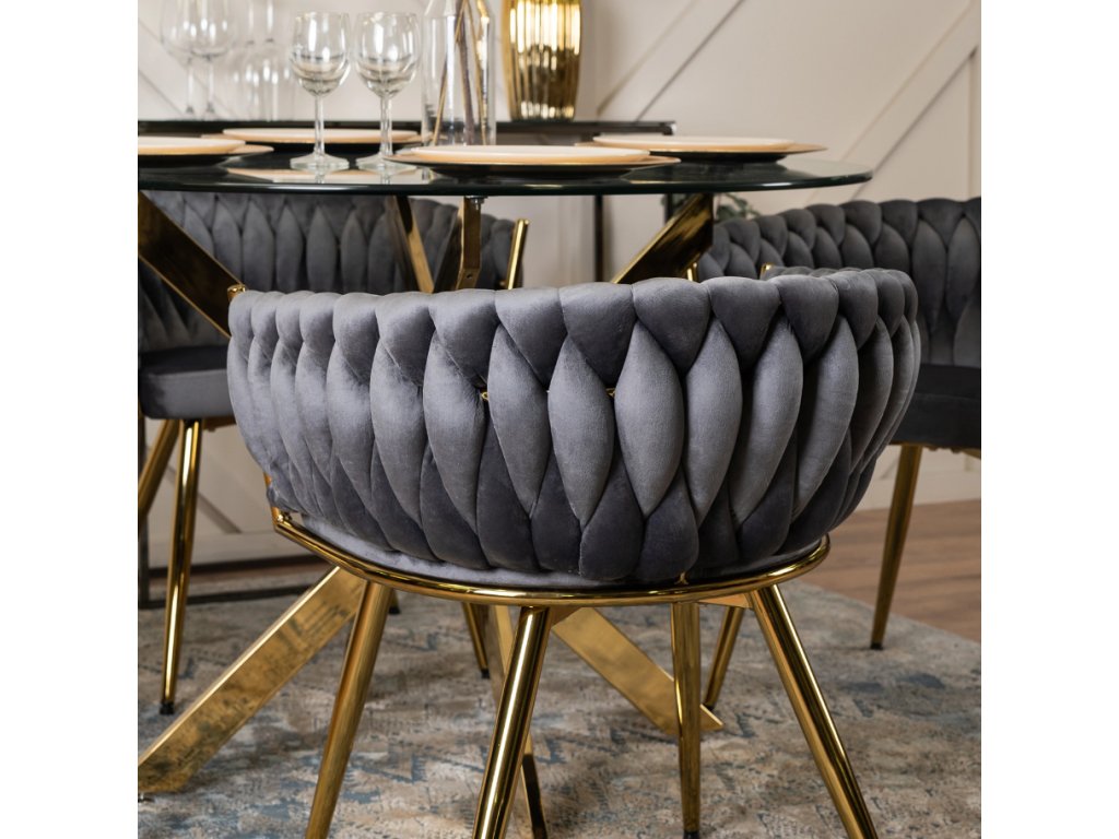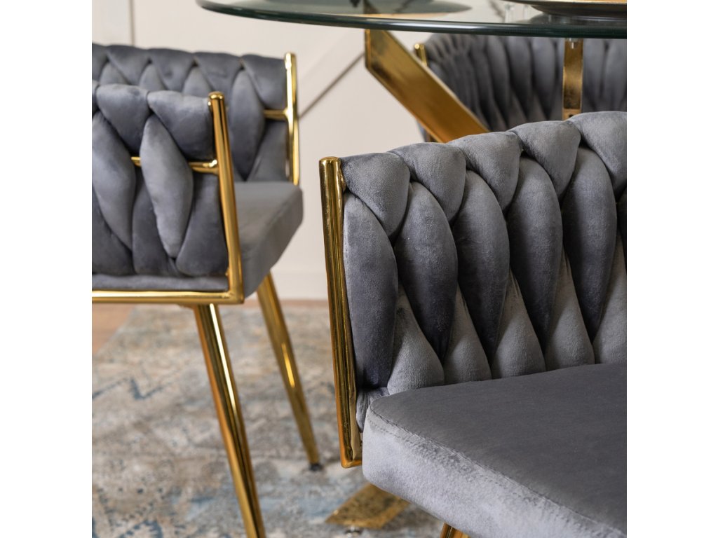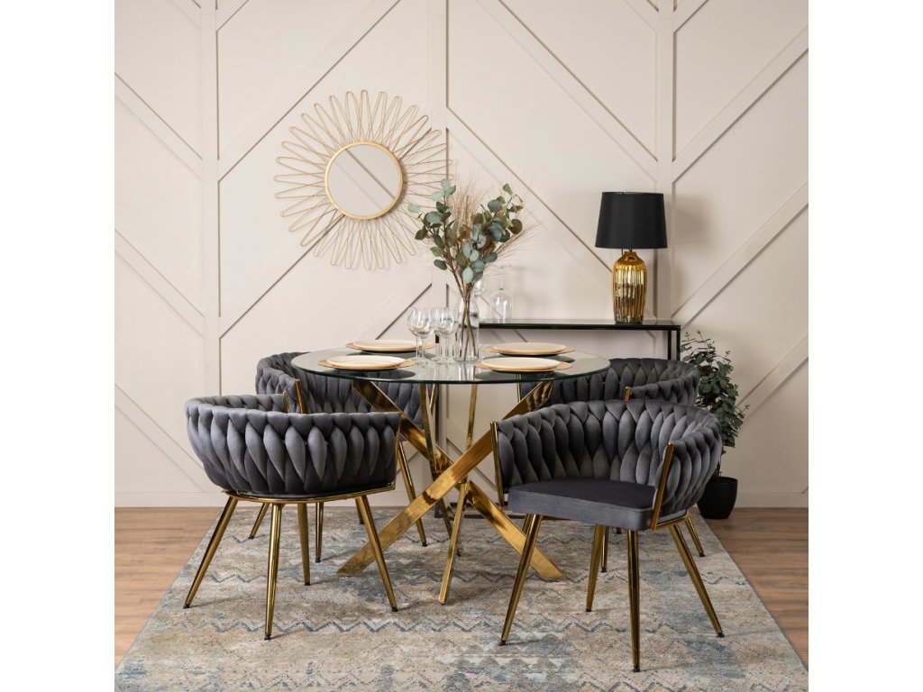 Kreslo CARINA pletený velúr - sivý zamat zlaté nohy