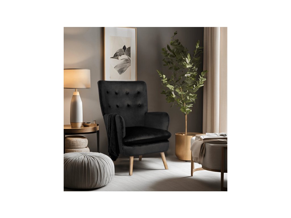Vintino kreslo DONATO je štýlový a pohodlný kúsok nábytku, ktorý kombinuje nadčasový dizajn, kvalitné materiály a praktickú funkčnosť. Elegantný čierny velúr pôsobí luxusne a príjemne na dotyk, vďaka čomu sa kreslo stáva príjemným miestom na relax doma alebo v kancelárii.