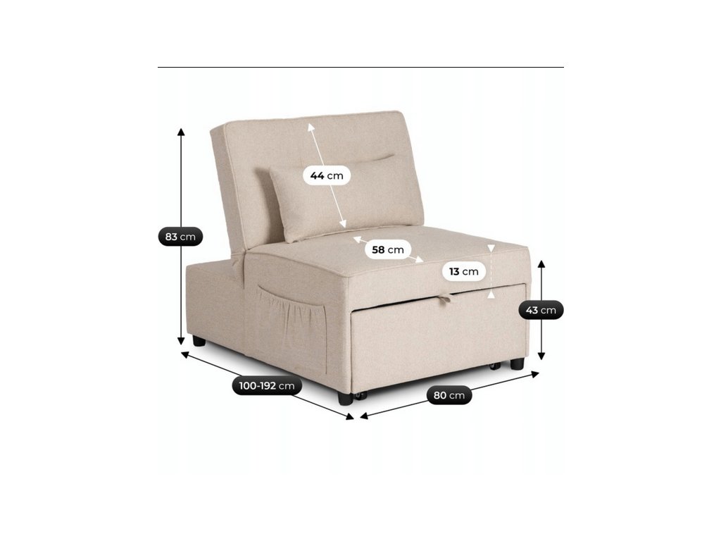 Kreslo je vybavené funkciou rozkladania, ktorá umožňuje jednoduché nastavenie ideálnej polohy pre relax, odpočinok alebo krátky spánok. Po rozložení poskytuje dostatočný priestor pre pohodlné ležanie, čím sa z kresla stáva multifunkčný kus nábytku vhodný pre každodenné použitie.