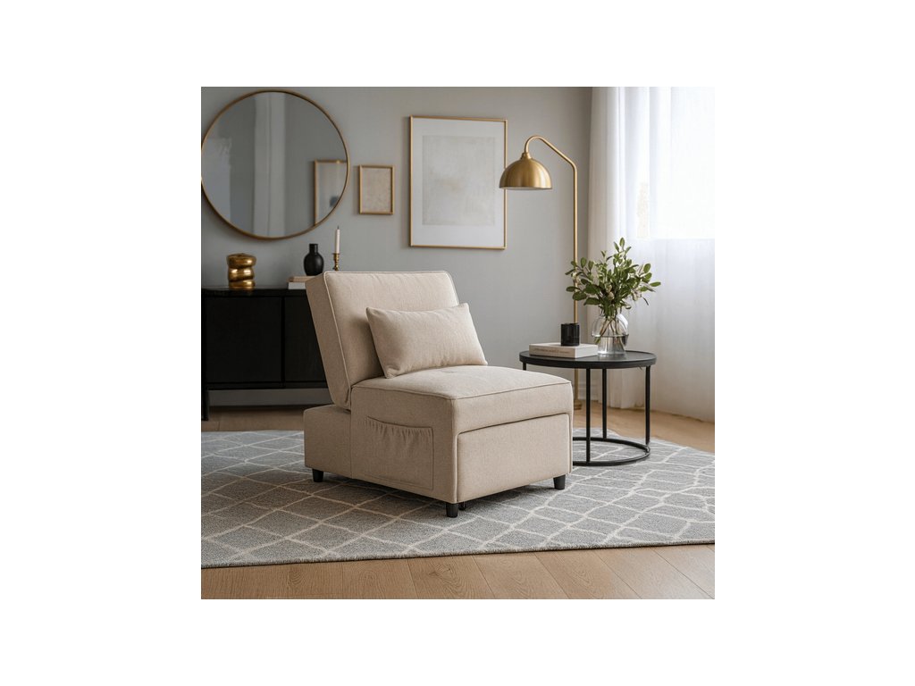 Kreslo EMILIO 67 cm v elegantnej béžovej farbe kombinuje komfort, funkčnosť a moderný dizajn. Vďaka širokému sedadlu, opierke hlavy a podrúčkam poskytuje pohodlie pri sedení, čítaní alebo relaxe. Kreslo disponuje funkciou rozkladania, ktorá umožňuje nastaviť ideálnu polohu na odpočinok alebo spánok.