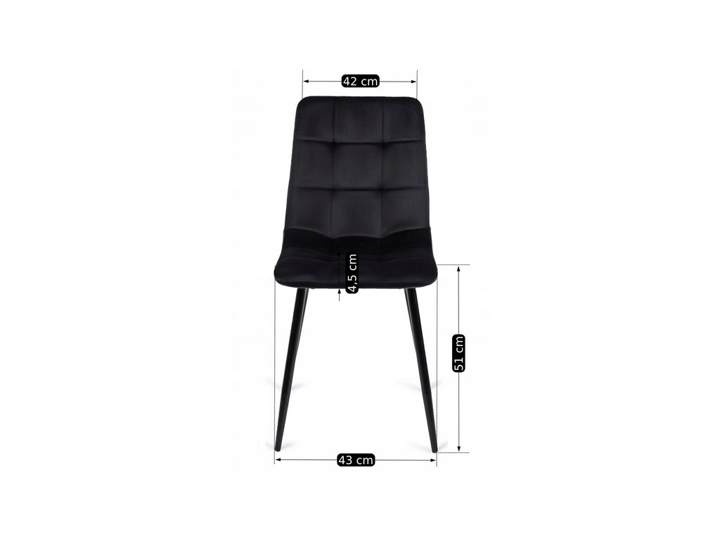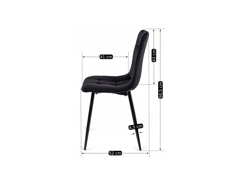 Elegantné čierne nohy: Stabilné čierne nohy dodávajú kreslu FORLI Velvet moderný a elegantný vzhľad. Kovová konštrukcia je pevná a zaručuje dlhú životnosť.