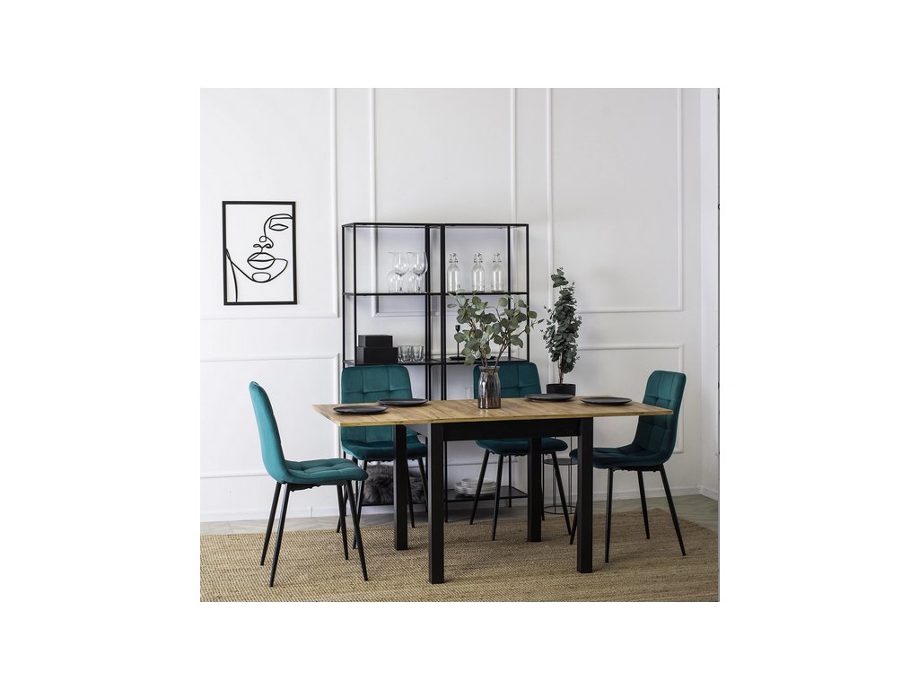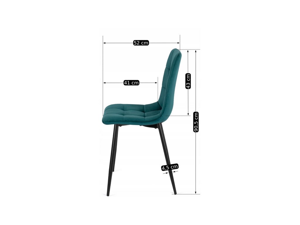 Elegancia a moderný dizajn: Tyrkysová farba v kombinácii s pevnými nohami vytvára elegantný a nadčasový dizajn, ktorý sa hodí do akéhokoľvek moderného interiéru.