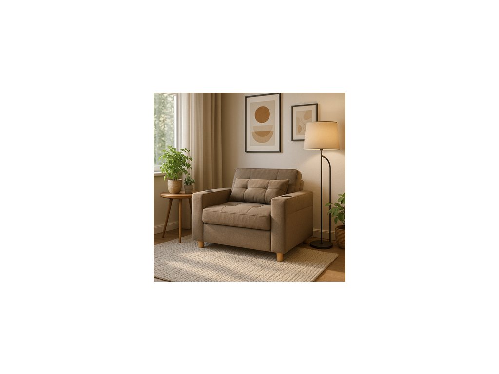 Kreslo JEREMY v elegantnom bežovom prevedení spája moderný dizajn s vysokým komfortom sedenia. Vďaka mäkkému a príjemnému látkovému poťahu pôsobí útulne a štýlovo zároveň, pričom dodá interiéru nádych luxusu a pohody.
