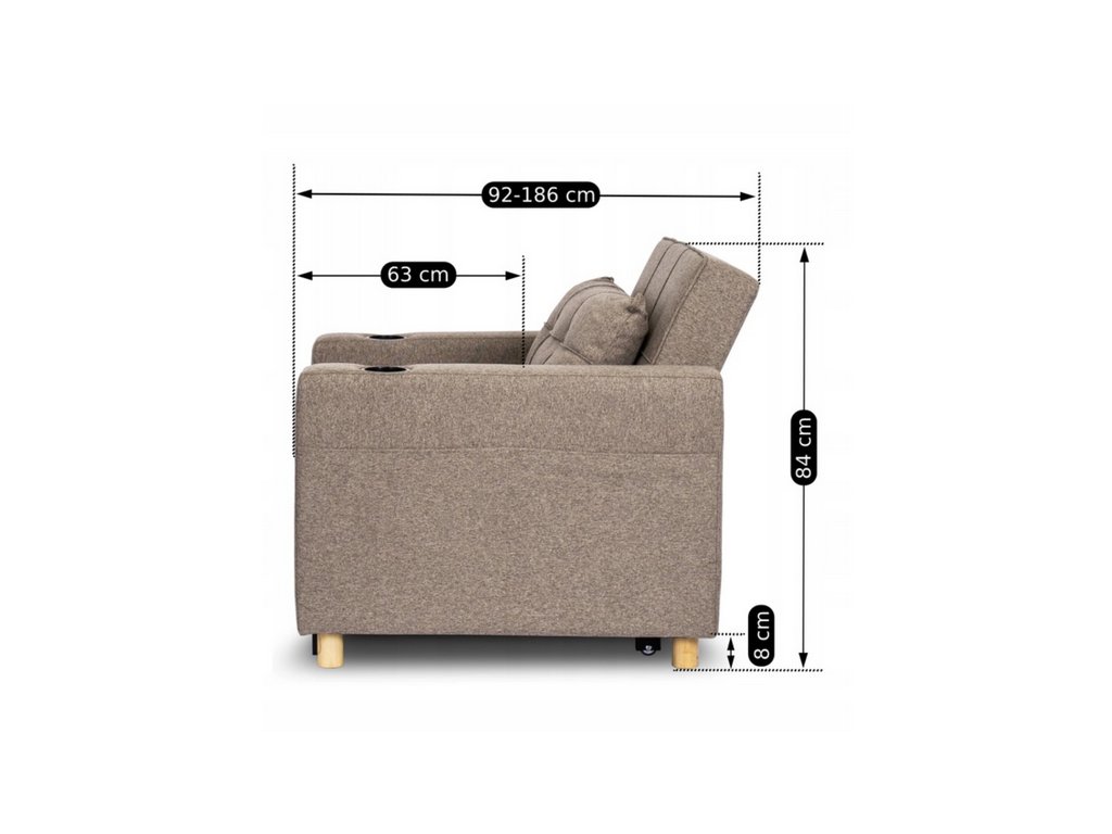 | Hĺbka kresla po rozložení:: | 186 cm |