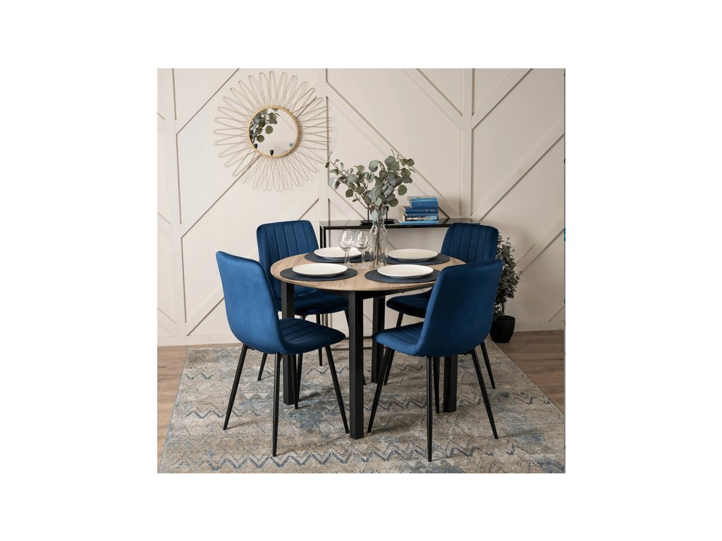 Elegancia a moderný dizajn: Modrá farba v kombinácii s pevnými nohami vytvára elegantný a nadčasový dizajn, ktorý sa hodí do akéhokoľvek moderného interiéru.