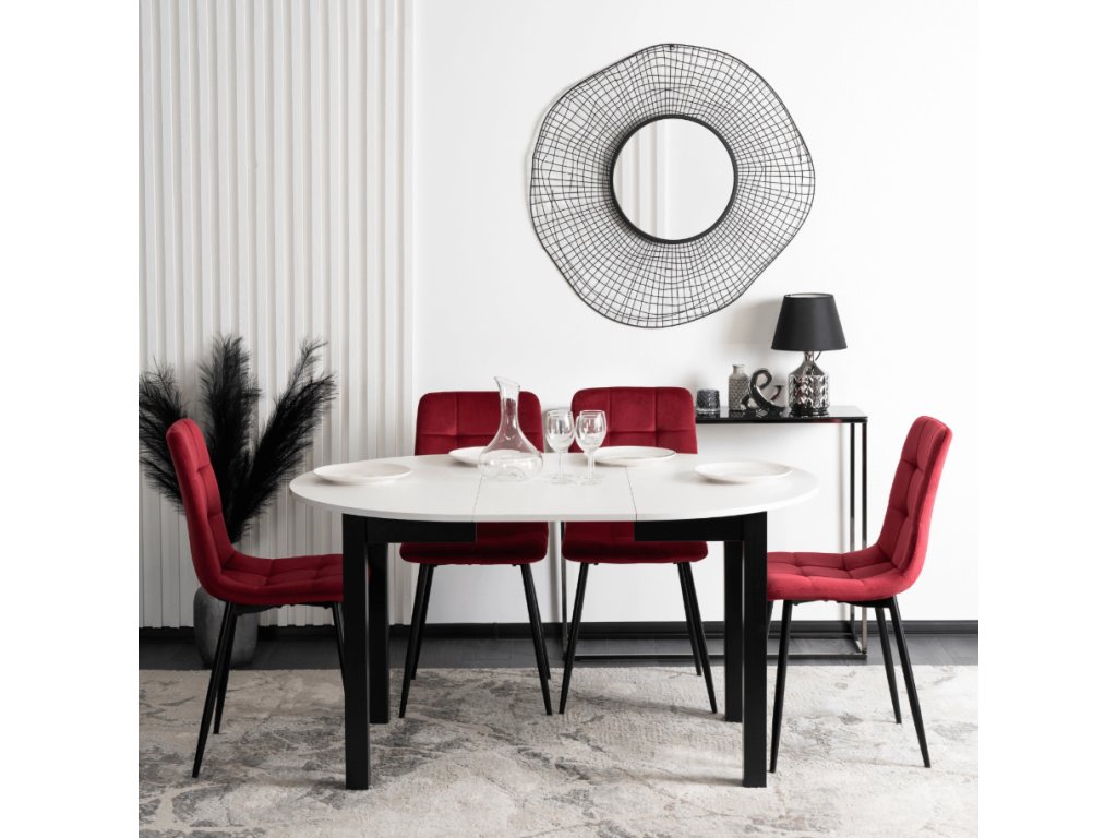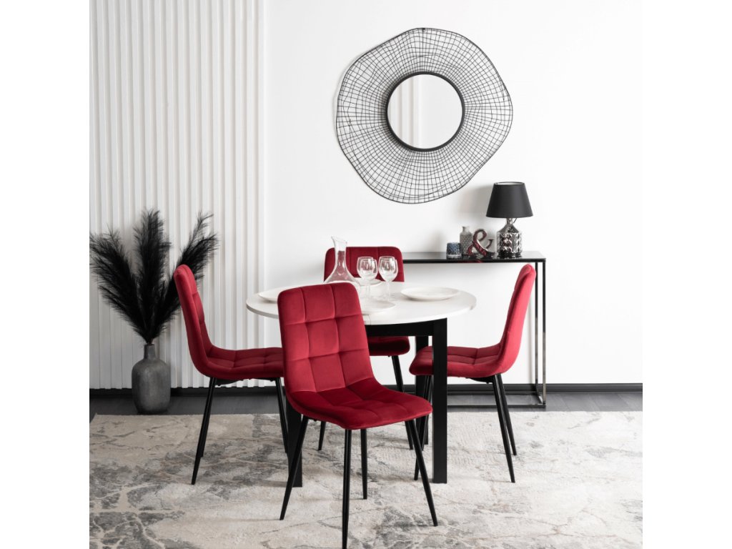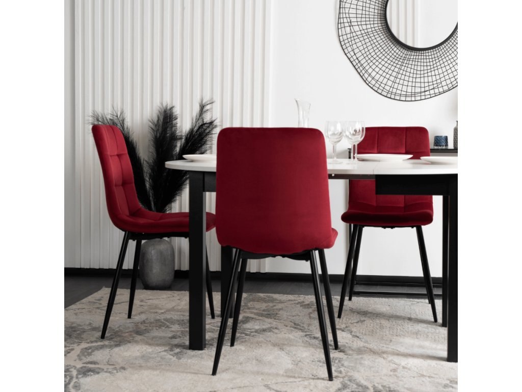 Elegancia a moderný dizajn: bordová farba v kombinácii s čiernými nohami vytvára elegantný a nadčasový dizajn, ktorý sa hodí do akéhokoľvek moderného interiéru.