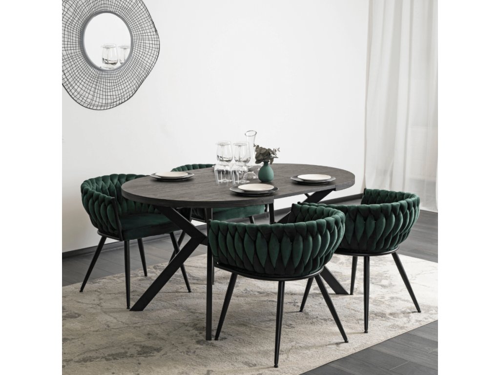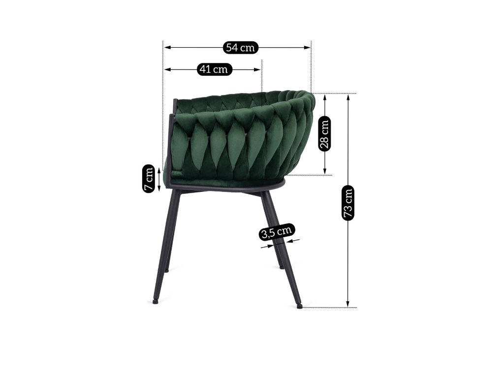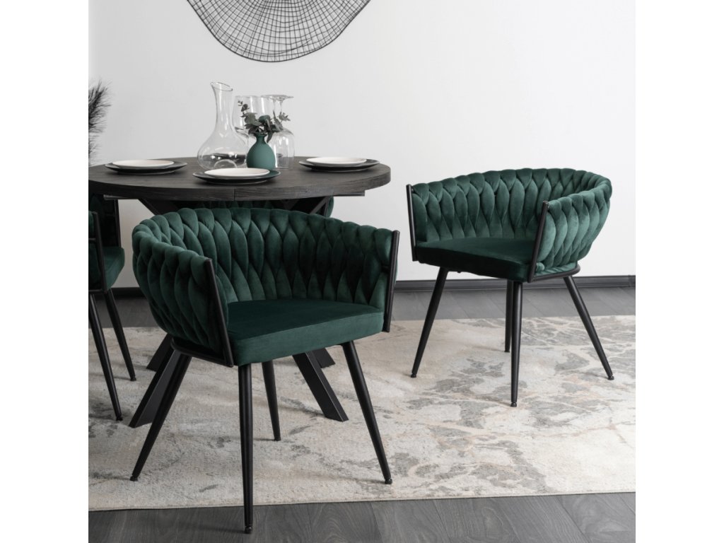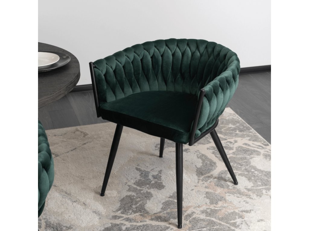 Kreslo ORION pletené velvet - smaragdovo zelený zamat čierne nohy
