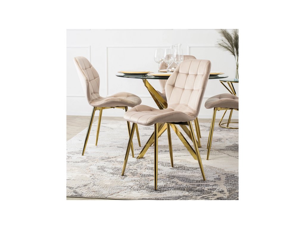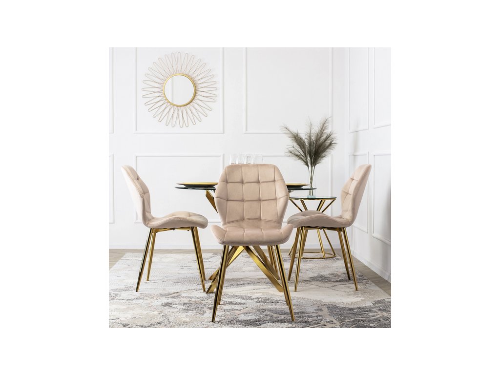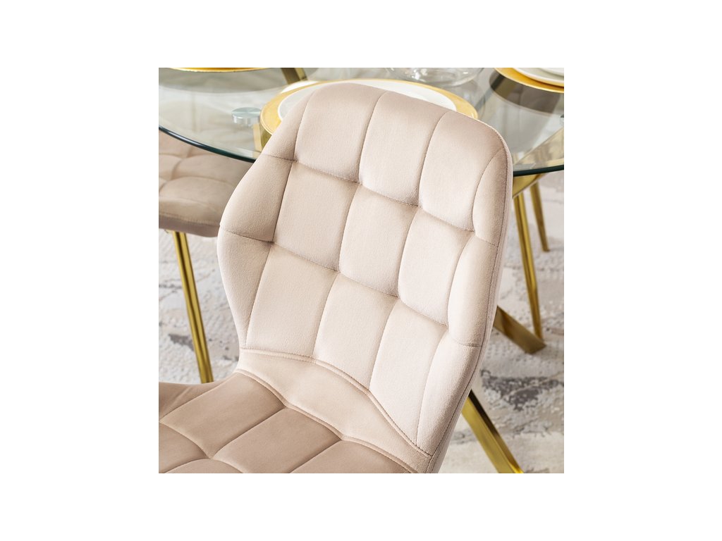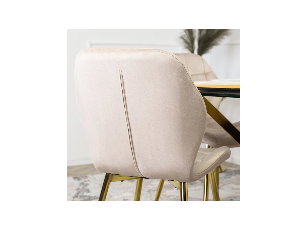 Jedálenská stolička TERNI velúr Velvet v kremovej farbe s elegantnými zlatými nohami je ideálnym doplnkom pre tých, ktorí hľadajú štýlové a pohodlné kreslo do obývačky, kancelárie alebo spálne. Tento kúsok nábytku je nielen dizajnovým prvkom, ale aj veľmi praktickým miestom na oddych. Stolička TERNI je skvelou kombináciou moderného vzhľadu, komfortu a funkčnosti, ktorá uspokojí aj náročného zákazníka.