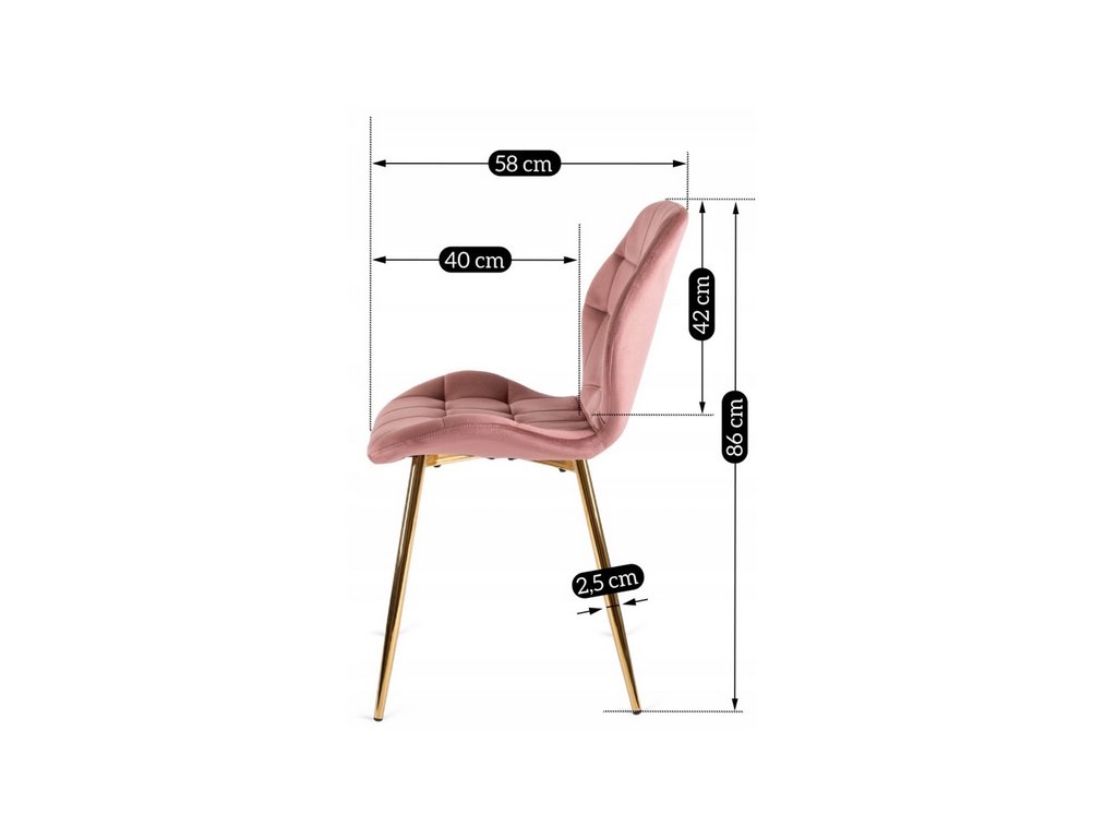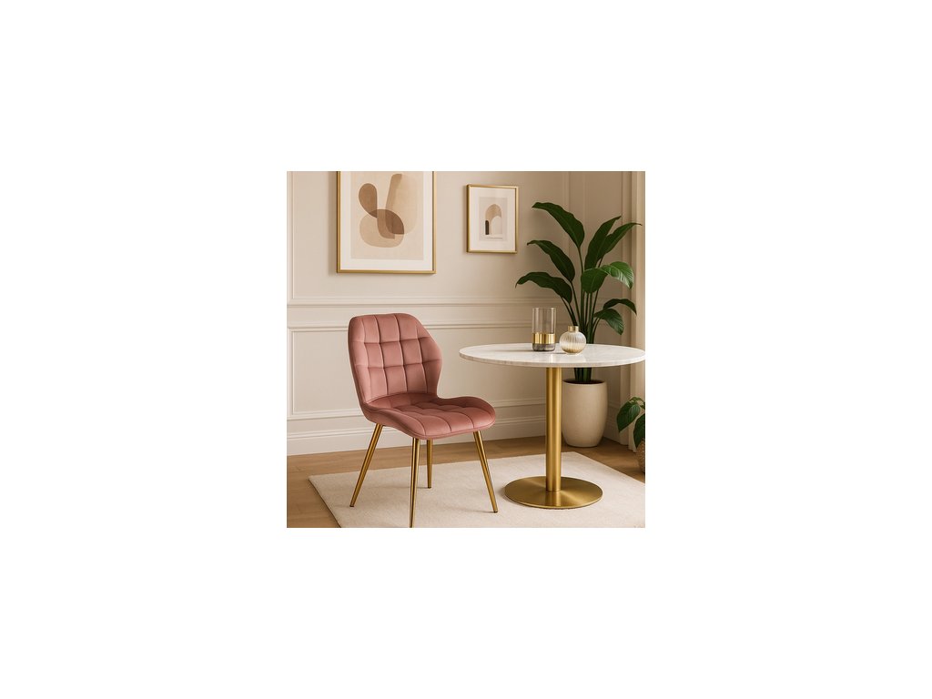Jedálenská stolička TERNI velúr Velvet v ružovej farbe s elegantnými zlatými nohami je ideálnym doplnkom pre tých, ktorí hľadajú štýlové a pohodlné kreslo do obývačky, kancelárie alebo spálne. Tento kúsok nábytku je nielen dizajnovým prvkom, ale aj veľmi praktickým miestom na oddych. Stolička TERNI je skvelou kombináciou moderného vzhľadu, komfortu a funkčnosti, ktorá uspokojí aj náročného zákazníka.
