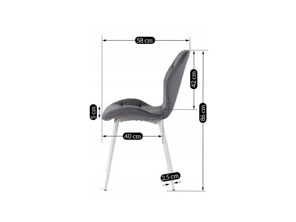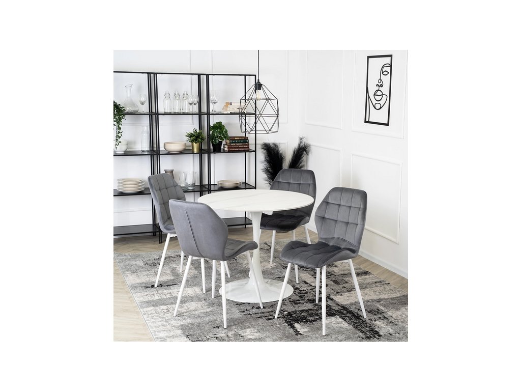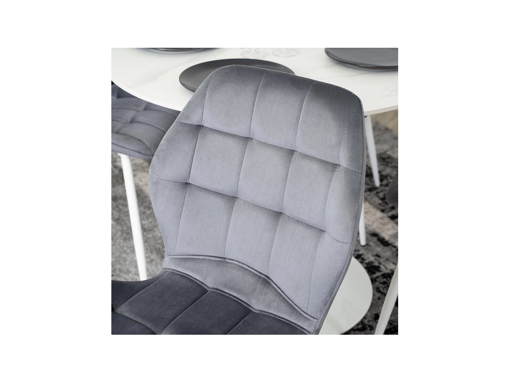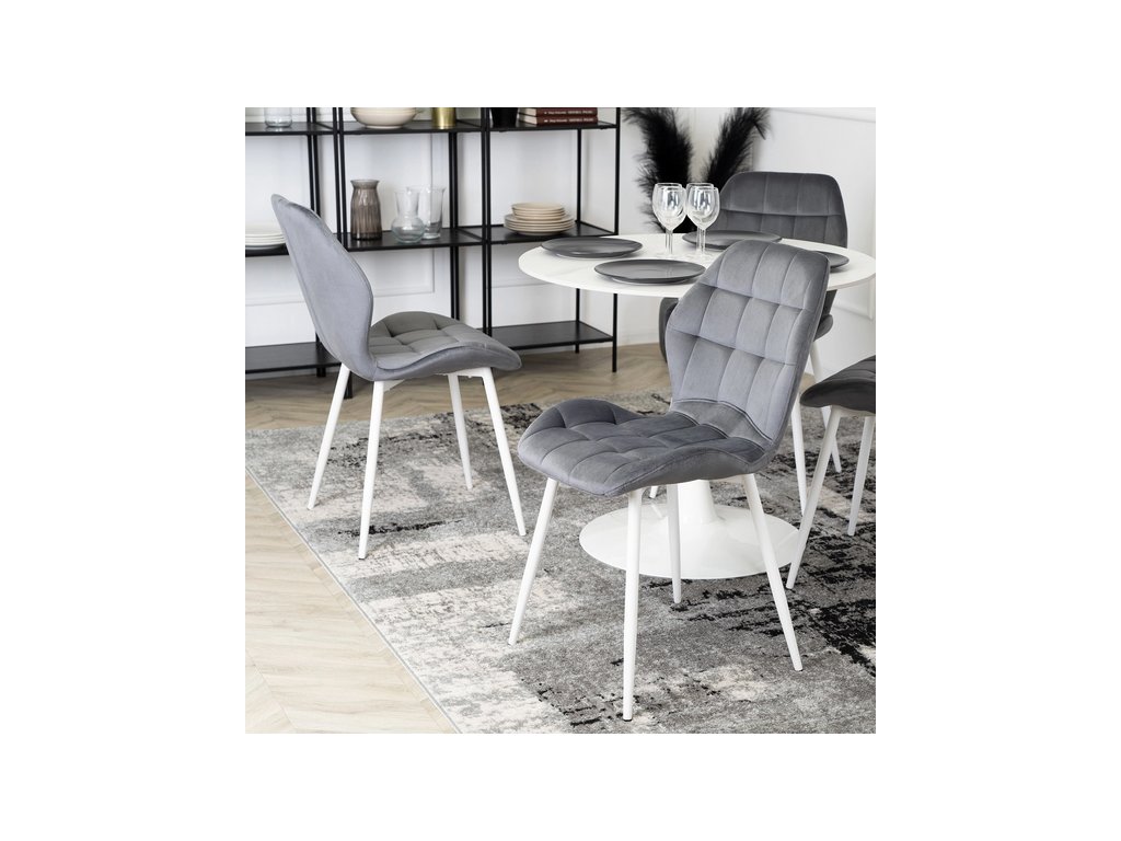 Jedálenská stolička TERNI velúr Velvet v sivej farbe s elegantnými bielými nohami je ideálnym doplnkom pre tých, ktorí hľadajú štýlové a pohodlné kreslo do obývačky, kancelárie alebo spálne. Tento kúsok nábytku je nielen dizajnovým prvkom, ale aj veľmi praktickým miestom na oddych. Stolička TERNI je skvelou kombináciou moderného vzhľadu, komfortu a funkčnosti, ktorá uspokojí aj náročného zákazníka.