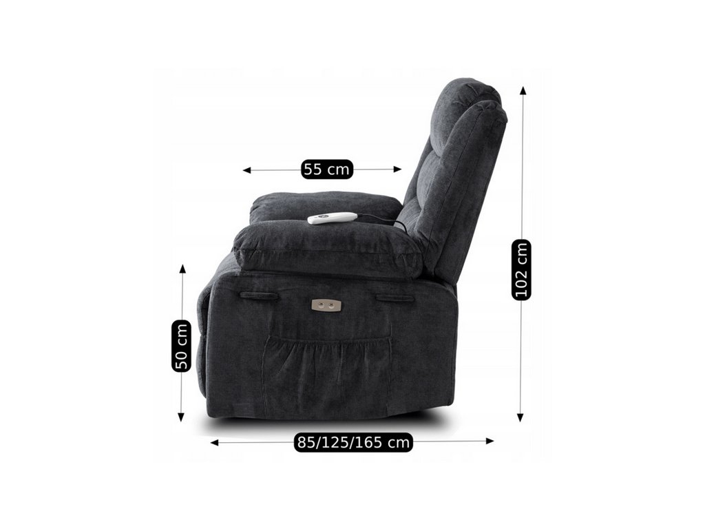 Masážne kreslo AMADEO v štýlovom čiernosivom prevedení z látky prináša profesionálny relax priamo do vášho domova. Kreslo kombinuje komfort, moderný dizajn a praktické funkcie, ako sú masážna funkcia a možnosť rozkladania, vďaka čomu si môžete dopriať oddych v optimálnej polohe.