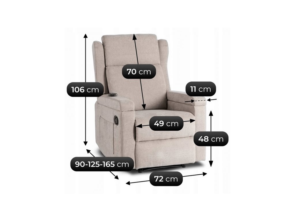 Masážne kreslo ANDREA je kombináciou pohodlia, funkčnosti a moderného dizajnu. V elegantnej bežovej látke sa hodí do každej obývacej izby a poskytuje dokonalý relax po náročnom dni.