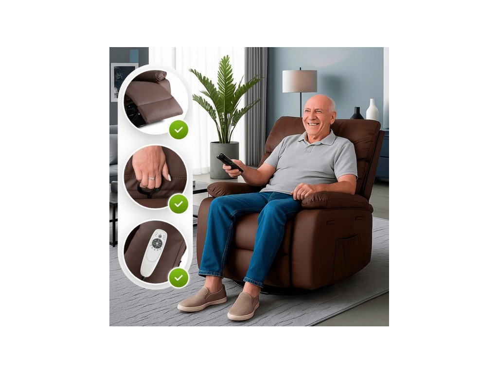 Kreslo je vybavené funkciou masáže, ktorá uvoľní svaly, zmierni napätie a podporí celkovú pohodu. Ďalšou výhodou je funkcia rozkladania, ktorá umožňuje nastaviť kreslo do polohy vhodnej na odpočinok alebo krátky spánok, a funkcia hojdania, ktorá zvyšuje relaxačný efekt a príjemný zážitok z používania.