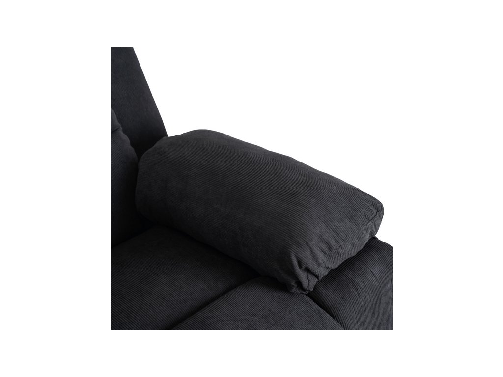 Kreslo MARCOS je čalúnené jemnou a odolnou poťahovou látkou v štýlovej tmavosivej farbe, ktorá je príjemná na dotyk a ľahko sa udržiava. Ergonomický tvar opierky chrbta, sedadla a podnožky sa prispôsobí telu, čím zaisťuje pohodlné sedenie aj pri dlhšom odpočinku.
