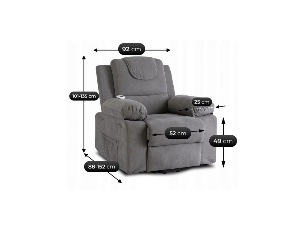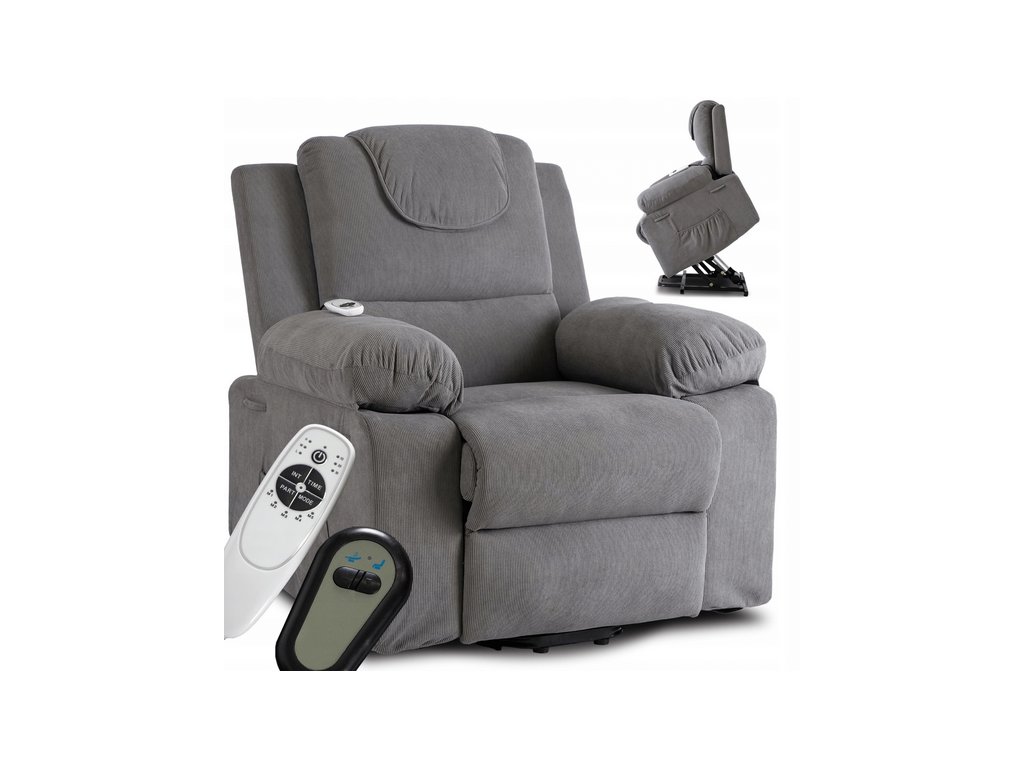 Masážne kreslo MARCOS v elegantnej sivej farbe ponúka maximálny komfort a praktickosť. Disponuje funkciou masáže aj asistovaného vstávania, ktorá uľahčuje postavenie sa z kresla. Mäkké čalúnenie a moderný dizajn zaručujú pohodlie aj štýl v každej domácnosti – ideálne pre oddych a relax.