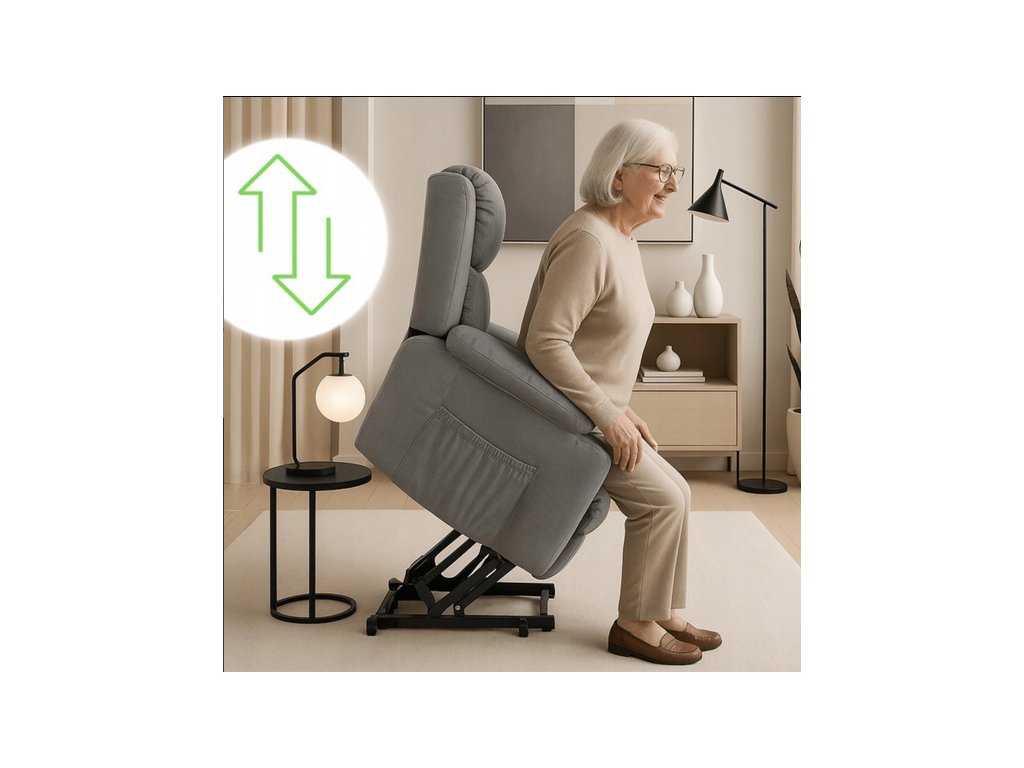 Jednou z hlavných výhod kresla MARCOS je praktická funkcia vstávania (lift). Pomocou elektrického mechanizmu sa sedadlo pomaly nakláňa dopredu, čím vám pomôže ľahko a bezpečne vstať. Táto funkcia je ideálna pre osoby s obmedzenou pohyblivosťou alebo po rehabilitácii.