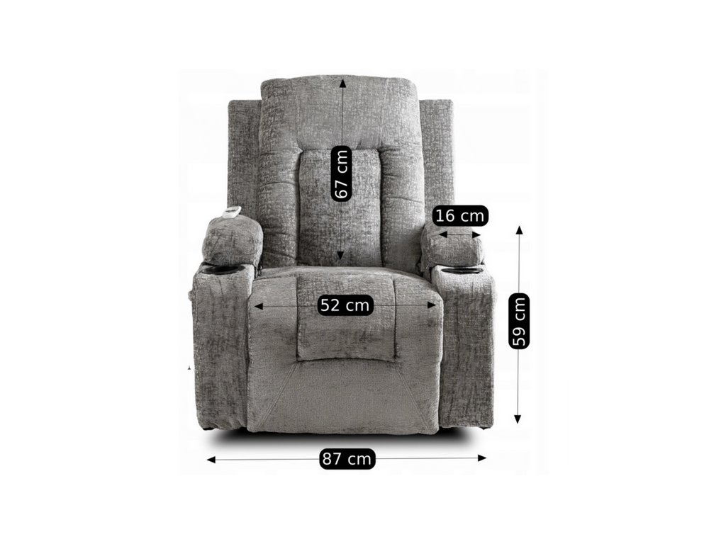 Polohovateľné masážne kreslo je vybavené praktickými bočnými vreckami na časopisy alebo knihy a držiakmi na nápoje. Vďaka tomu si môžete vychutnať šálku kávy, čítanie alebo sledovanie televízie bez nutnosti vstávať – oddych si tak užijete naplno a nerušene.