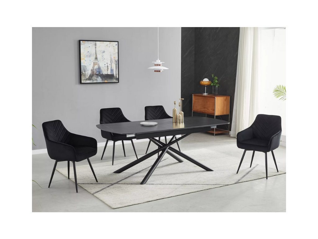 Gaston Ceramic 140 je rozkladací jedálenský stôl s oválnym tvarom, ktorý kombinuje keramickú dosku s čiernym kovovým rámom. Vďaka prídavnej vložke sa jednoducho prispôsobí počtu hostí a po rozložení usadí až osem ľudí. Spojenie odolných materiálov a moderného dizajnu z neho robí praktický a elegantný kúsok do každého interiéru.