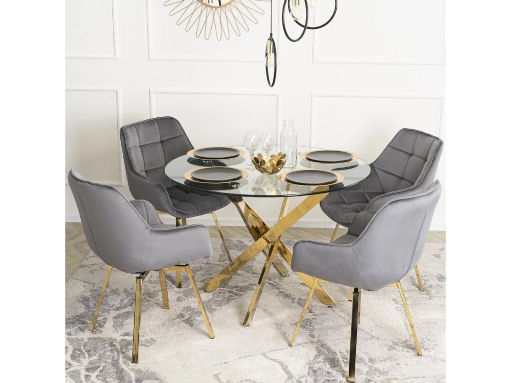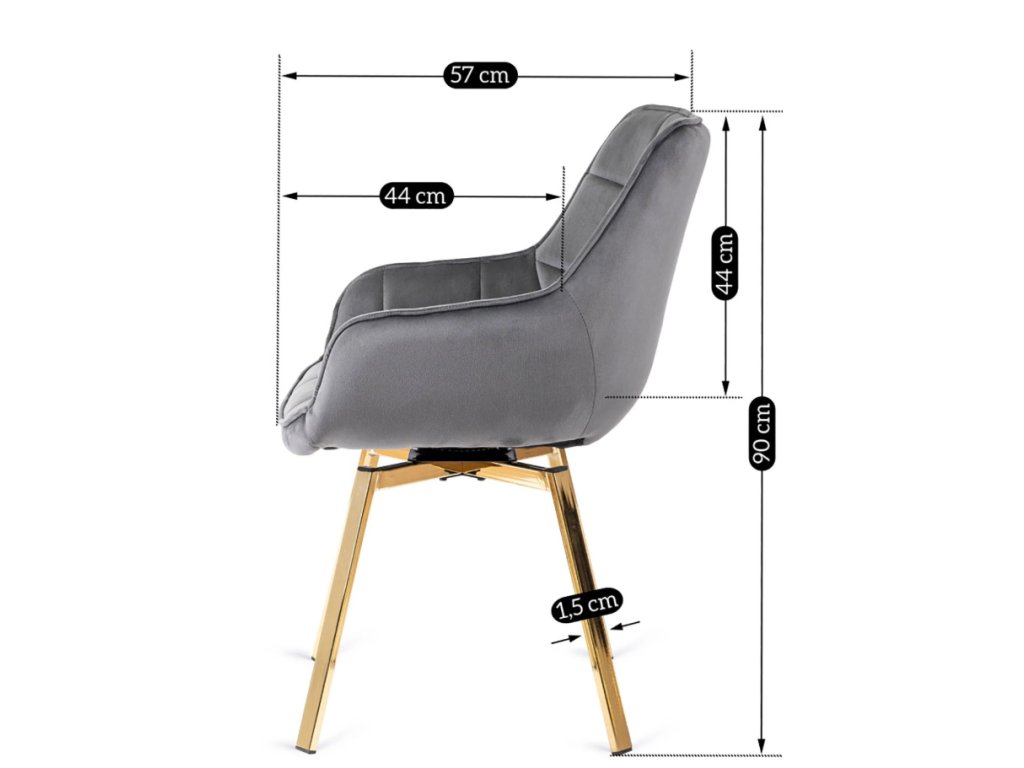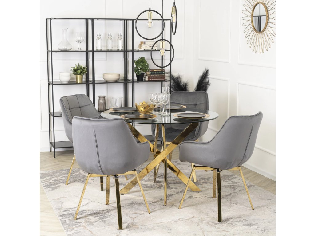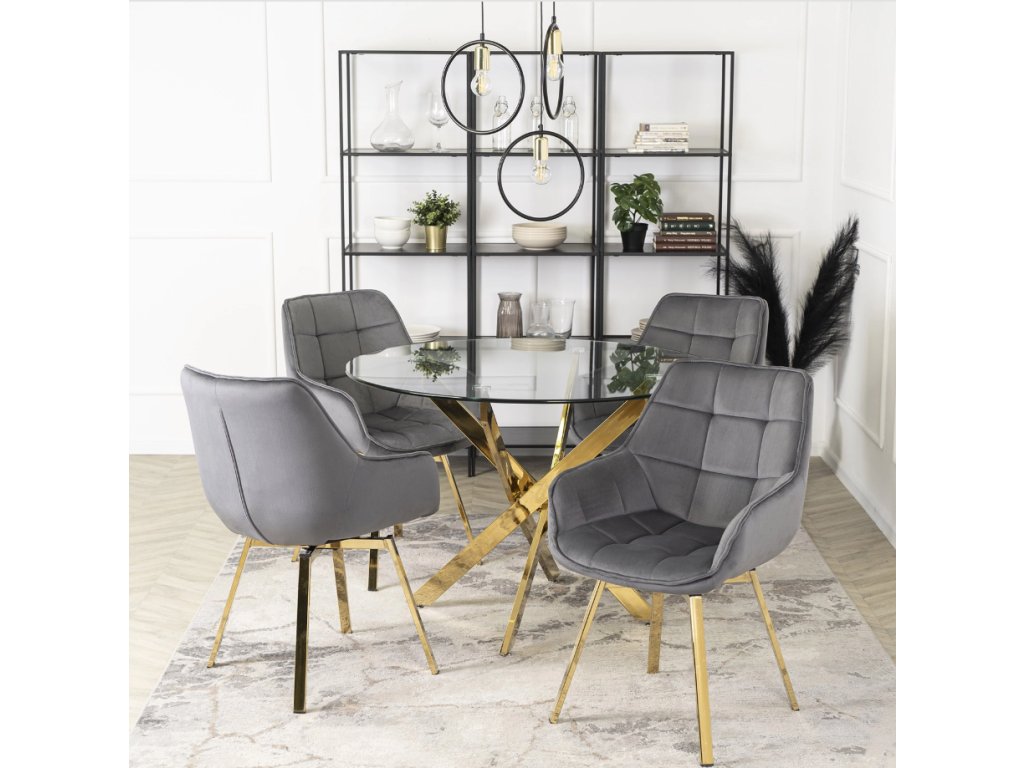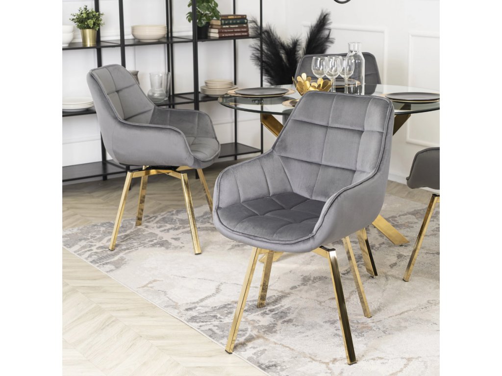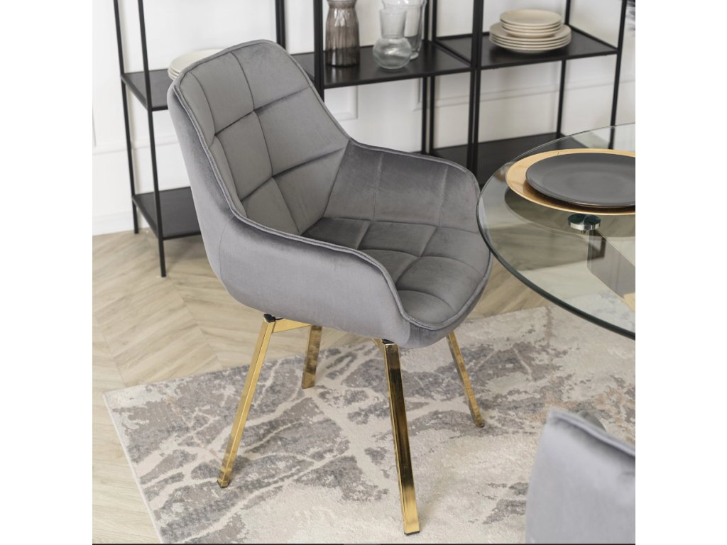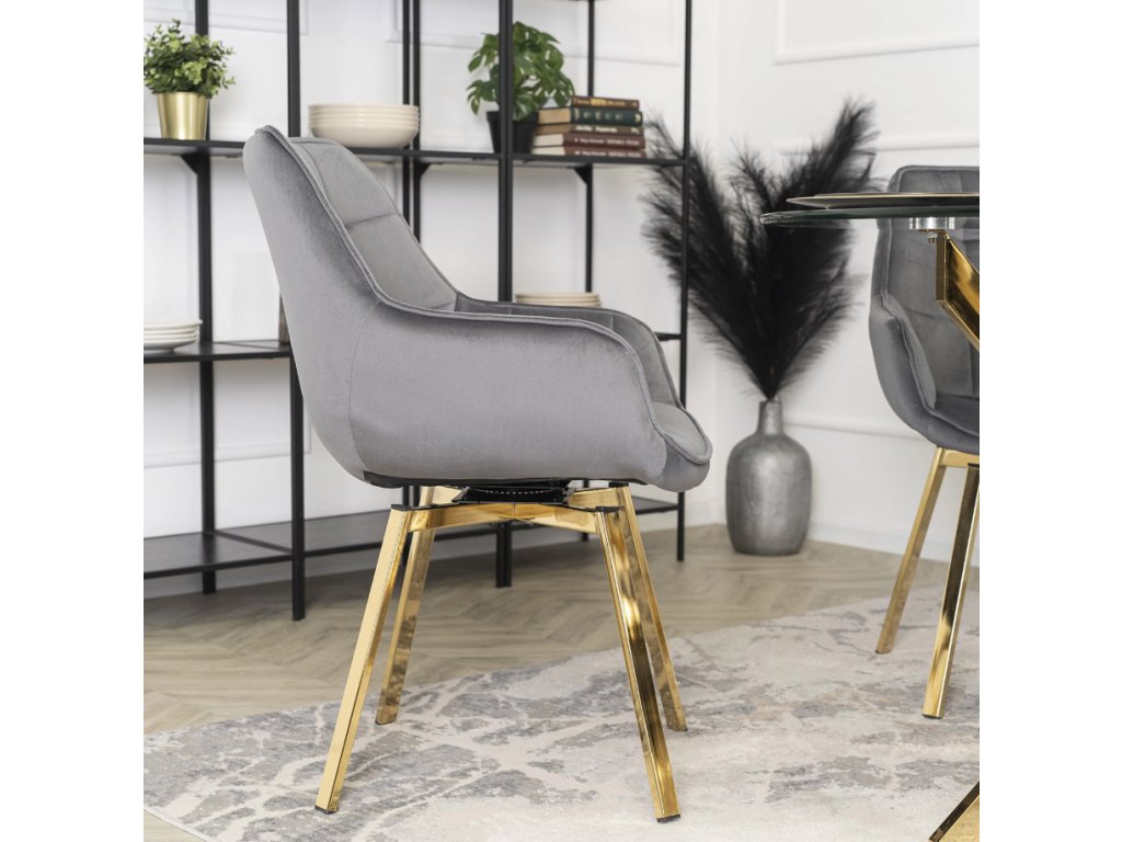 Otočné Kreslo BARI - sivý velur zlaté nohy
