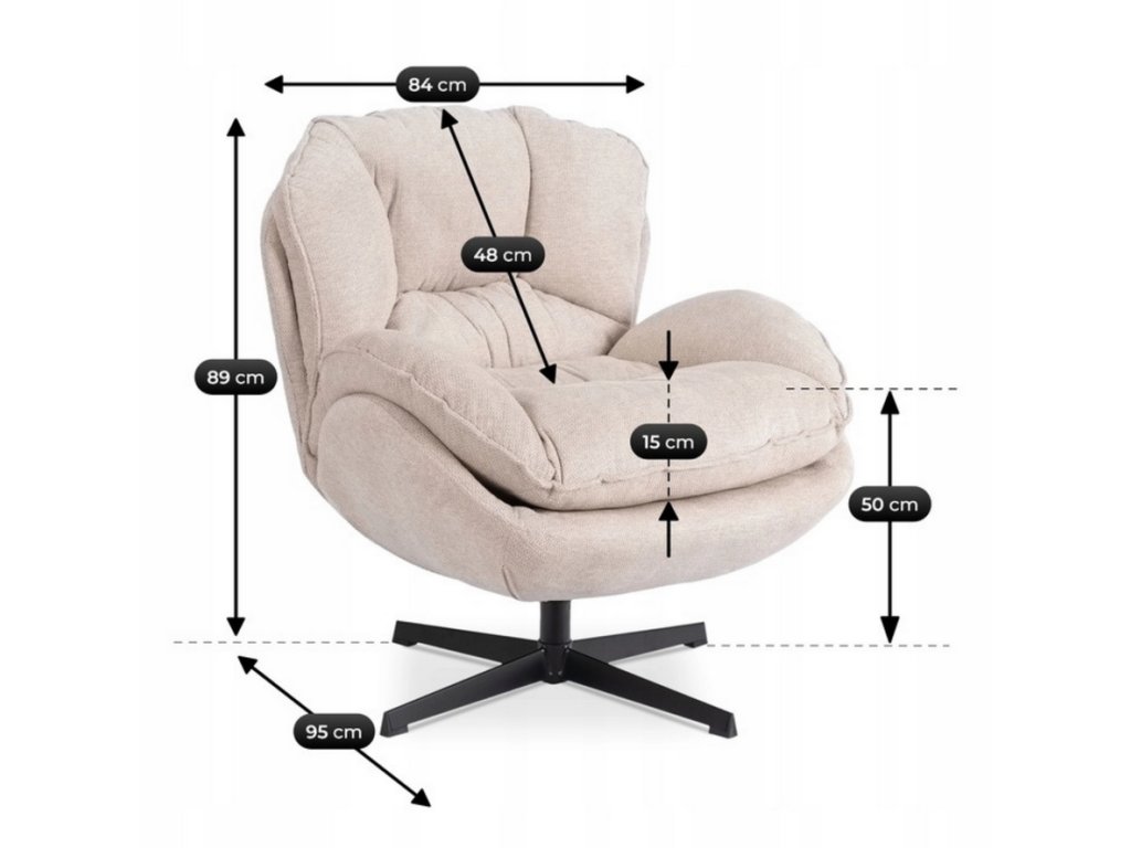 Doprajte si chvíle oddychu s moderným a komfortným otočným kreslom DALILA v elegantnej kremovej farbe. Je navrhnuté tak, aby spájalo štýl, funkčnosť a pohodlie. Mäkké čalúnenie poskytuje výnimočný komfort, zatiaľ čo stabilná otočná základňa umožňuje voľný pohyb bez nutnosti vstávať.