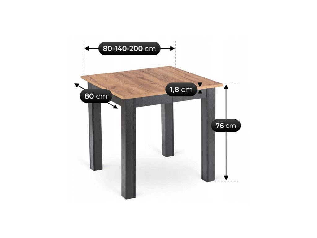 Stôl je rozkladací, takže jeho dĺžku môžete jednoducho prispôsobiť podľa potreby – zo 80 cm sa rozšíri až na 200 cm, čo poskytuje dostatok miesta pre rodinné stretnutia alebo návštevy priateľov.